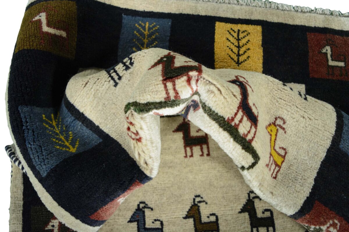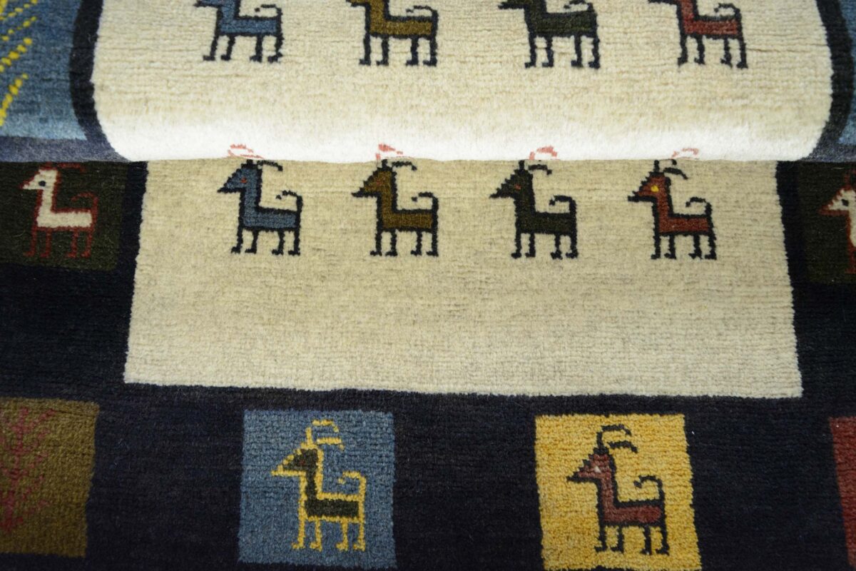 Im Unterschied zu anderen Perserteppichen ist der Flor von Gabbeh-Teppichen dicker und erreicht bis zu 2,5 cm. Die feingesponnene, persische Schurwolle macht ihn besonders flauschig, wobei die feineren Qualitäten auch als Loribaff oder Risbaff bezeichnet werden. Anders als traditionelle Knüpfkunstwerke kann ein moderner Teppich in Gabbeh-Technik verschiedenste Designs aufweisen und wird in zahlreichen modernen Farben angeboten. Daher können Sie günstig (bei mytepp) echte Gabbeh-Teppiche für jeden Geschmack online kaufen.