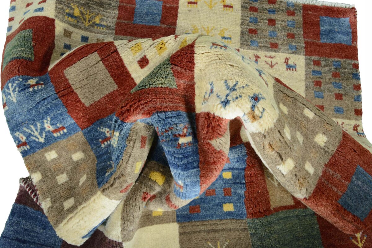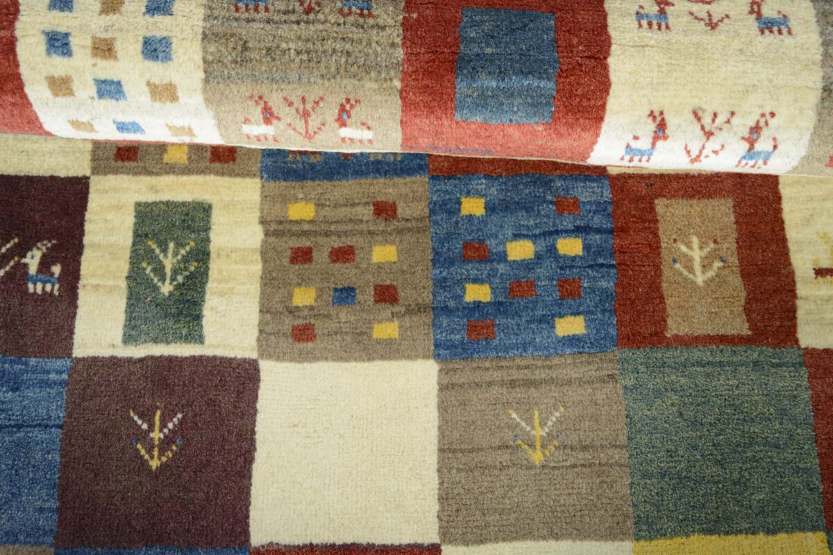 Im Unterschied zu anderen Perserteppichen ist der Flor von Gabbeh-Teppichen dicker und erreicht bis zu 2,5 cm. Die feingesponnene, persische Schurwolle macht ihn besonders flauschig, wobei die feineren Qualitäten auch als Loribaff oder Risbaff bezeichnet werden. Anders als traditionelle Knüpfkunstwerke kann ein moderner Teppich in Gabbeh-Technik verschiedenste Designs aufweisen und wird in zahlreichen modernen Farben angeboten. Daher können Sie günstig (bei mytepp) echte Gabbeh-Teppiche für jeden Geschmack online kaufen.