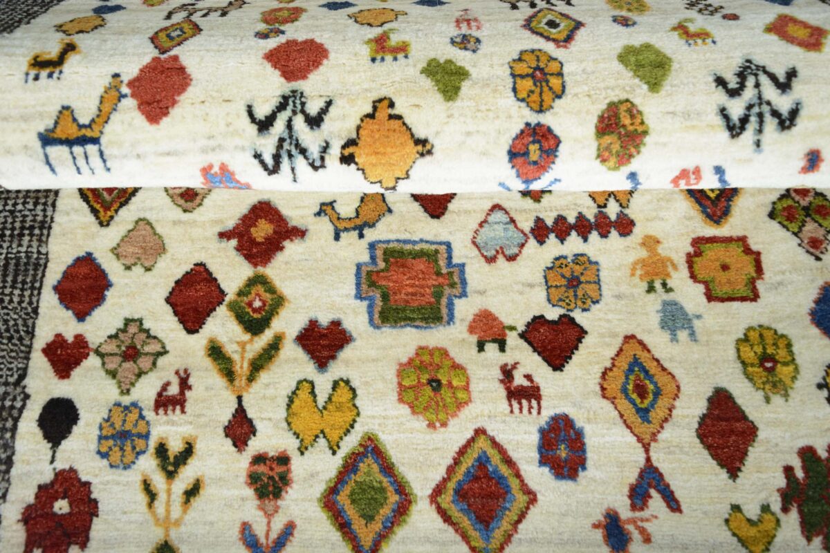 Im Unterschied zu anderen Perserteppichen ist der Flor von Gabbeh-Teppichen dicker und erreicht bis zu 2,5 cm. Die feingesponnene, persische Schurwolle macht ihn besonders flauschig, wobei die feineren Qualitäten auch als Loribaff oder Risbaff bezeichnet werden. Anders als traditionelle Knüpfkunstwerke kann ein moderner Teppich in Gabbeh-Technik verschiedenste Designs aufweisen und wird in zahlreichen modernen Farben angeboten. Daher können Sie günstig (bei mytepp) echte Gabbeh-Teppiche für jeden Geschmack online kaufen.