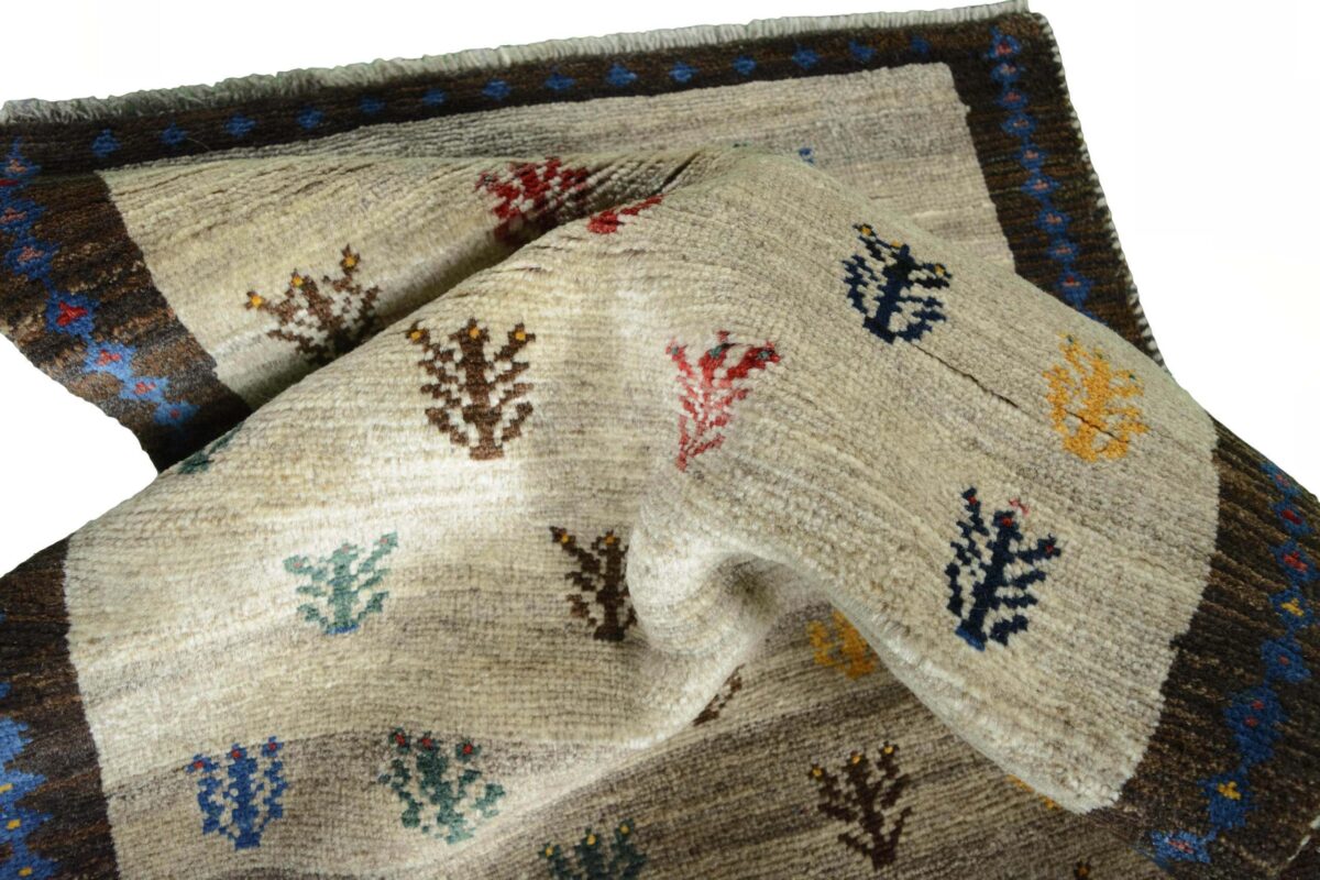 Im Unterschied zu anderen Perserteppichen ist der Flor von Gabbeh-Teppichen dicker und erreicht bis zu 2,5 cm. Die feingesponnene, persische Schurwolle macht ihn besonders flauschig, wobei die feineren Qualitäten auch als Loribaff oder Risbaff bezeichnet werden. Anders als traditionelle Knüpfkunstwerke kann ein moderner Teppich in Gabbeh-Technik verschiedenste Designs aufweisen und wird in zahlreichen modernen Farben angeboten. Daher können Sie günstig (bei mytepp) echte Gabbeh-Teppiche für jeden Geschmack online kaufen.