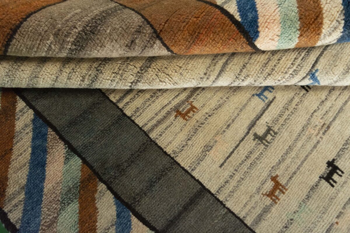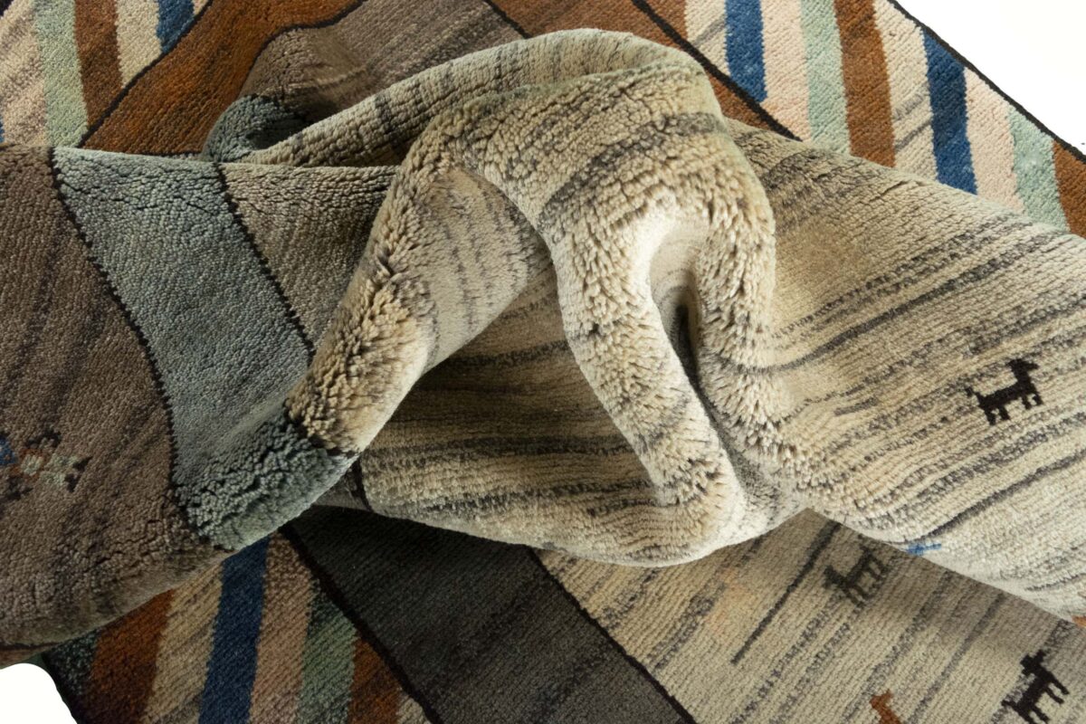 Im Unterschied zu anderen Perserteppichen ist der Flor von Gabbeh-Teppichen dicker und erreicht bis zu 2,5 cm. Die feingesponnene, persische Schurwolle macht ihn besonders flauschig, wobei die feineren Qualitäten auch als Loribaff oder Risbaff bezeichnet werden. Anders als traditionelle Knüpfkunstwerke kann ein moderner Teppich in Gabbeh-Technik verschiedenste Designs aufweisen und wird in zahlreichen modernen Farben angeboten. Daher können Sie günstig (bei mytepp) echte Gabbeh-Teppiche für jeden Geschmack online kaufen.