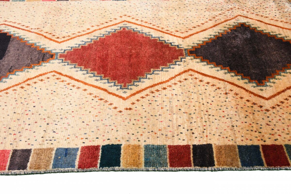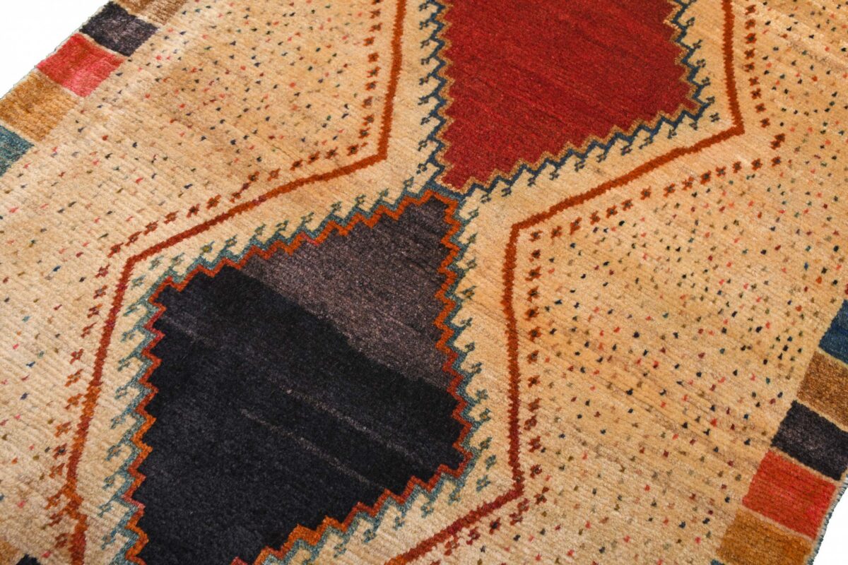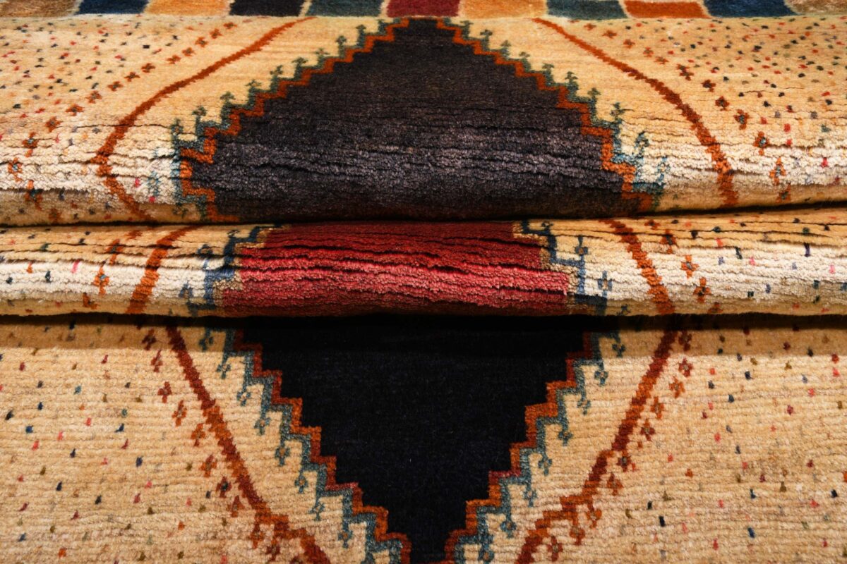 Im Unterschied zu anderen Perserteppichen ist der Flor von Gabbeh-Teppichen dicker und erreicht bis zu 2,5 cm. Die feingesponnene, persische Schurwolle macht ihn besonders flauschig, wobei die feineren Qualitäten auch als Loribaff oder Risbaff bezeichnet werden. Anders als traditionelle Knüpfkunstwerke kann ein moderner Teppich in Gabbeh-Technik verschiedenste Designs aufweisen und wird in zahlreichen modernen Farben angeboten. Daher können Sie günstig (bei mytepp) echte Gabbeh-Teppiche für jeden Geschmack online kaufen.