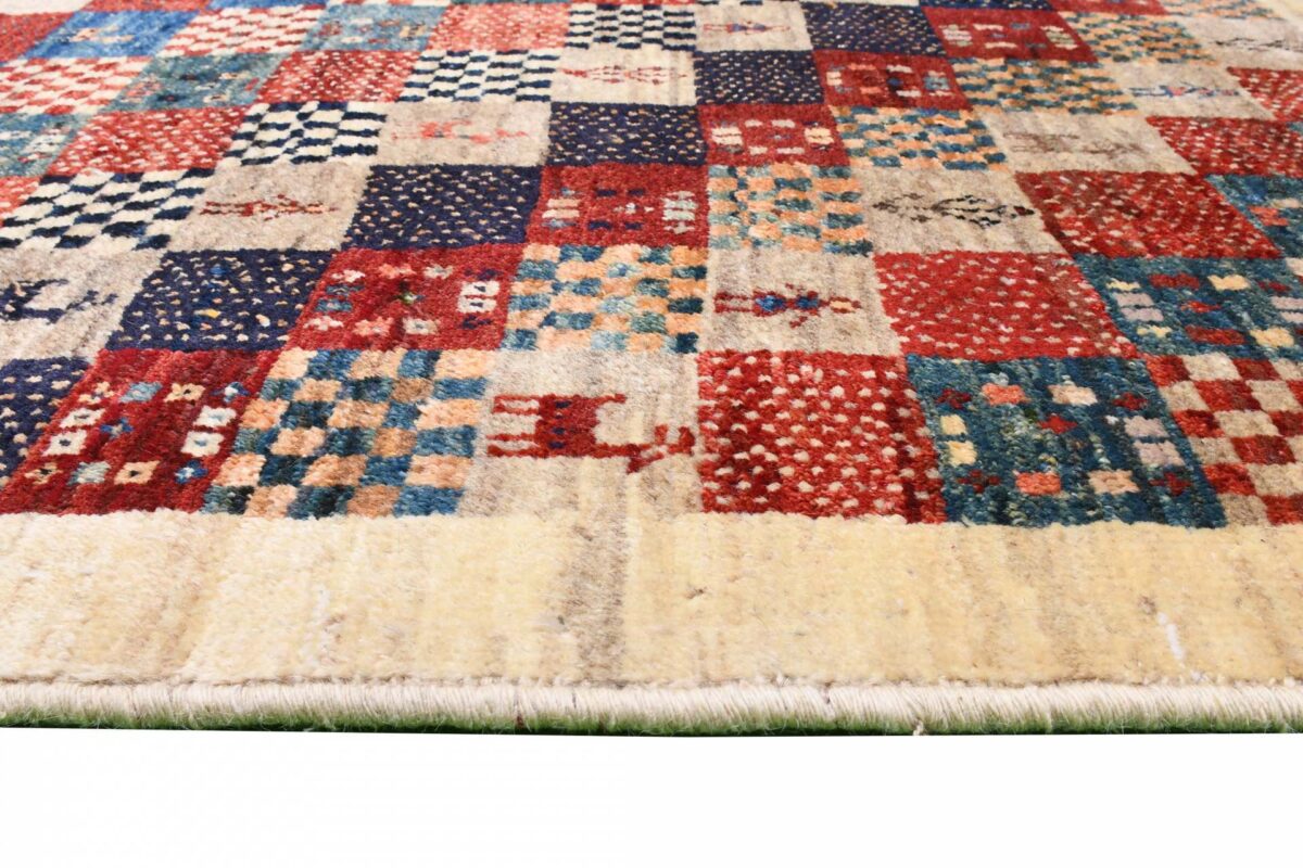 Im Unterschied zu anderen Perserteppichen ist der Flor von Gabbeh-Teppichen dicker und erreicht bis zu 2,5 cm. Die feingesponnene, persische Schurwolle macht ihn besonders flauschig, wobei die feineren Qualitäten auch als Loribaff oder Risbaff bezeichnet werden. Anders als traditionelle Knüpfkunstwerke kann ein moderner Teppich in Gabbeh-Technik verschiedenste Designs aufweisen und wird in zahlreichen modernen Farben angeboten. Daher können Sie günstig (bei mytepp) echte Gabbeh-Teppiche für jeden Geschmack online kaufen.
