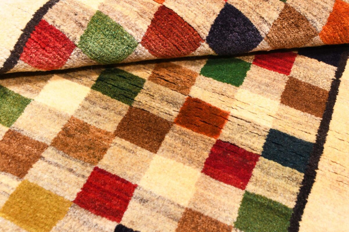 Im Unterschied zu anderen Perserteppichen ist der Flor von Gabbeh-Teppichen dicker und erreicht bis zu 2,5 cm. Die feingesponnene, persische Schurwolle macht ihn besonders flauschig, wobei die feineren Qualitäten auch als Loribaff oder Risbaff bezeichnet werden. Anders als traditionelle Knüpfkunstwerke kann ein moderner Teppich in Gabbeh-Technik verschiedenste Designs aufweisen und wird in zahlreichen modernen Farben angeboten. Daher können Sie günstig (bei mytepp) echte Gabbeh-Teppiche für jeden Geschmack online kaufen.