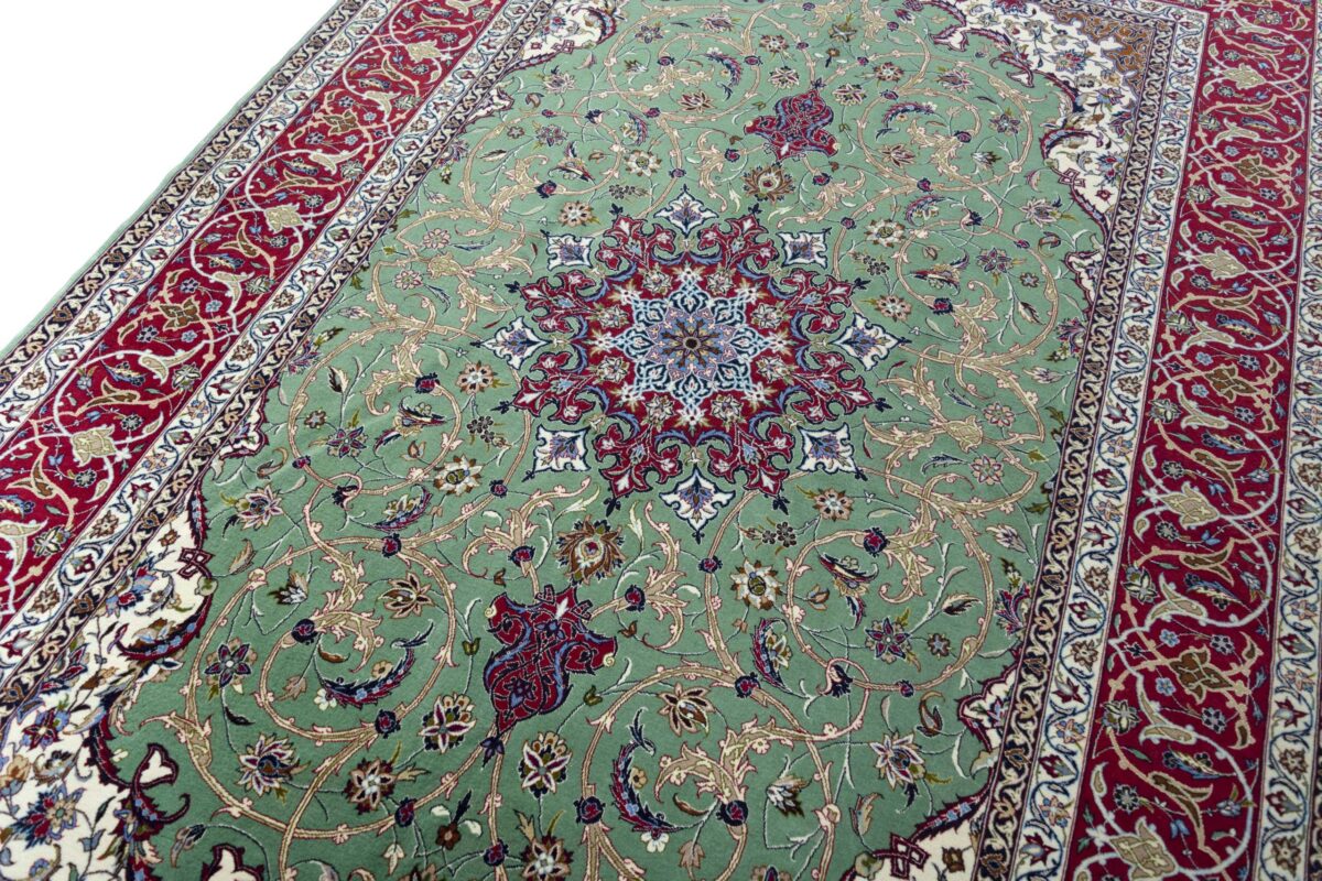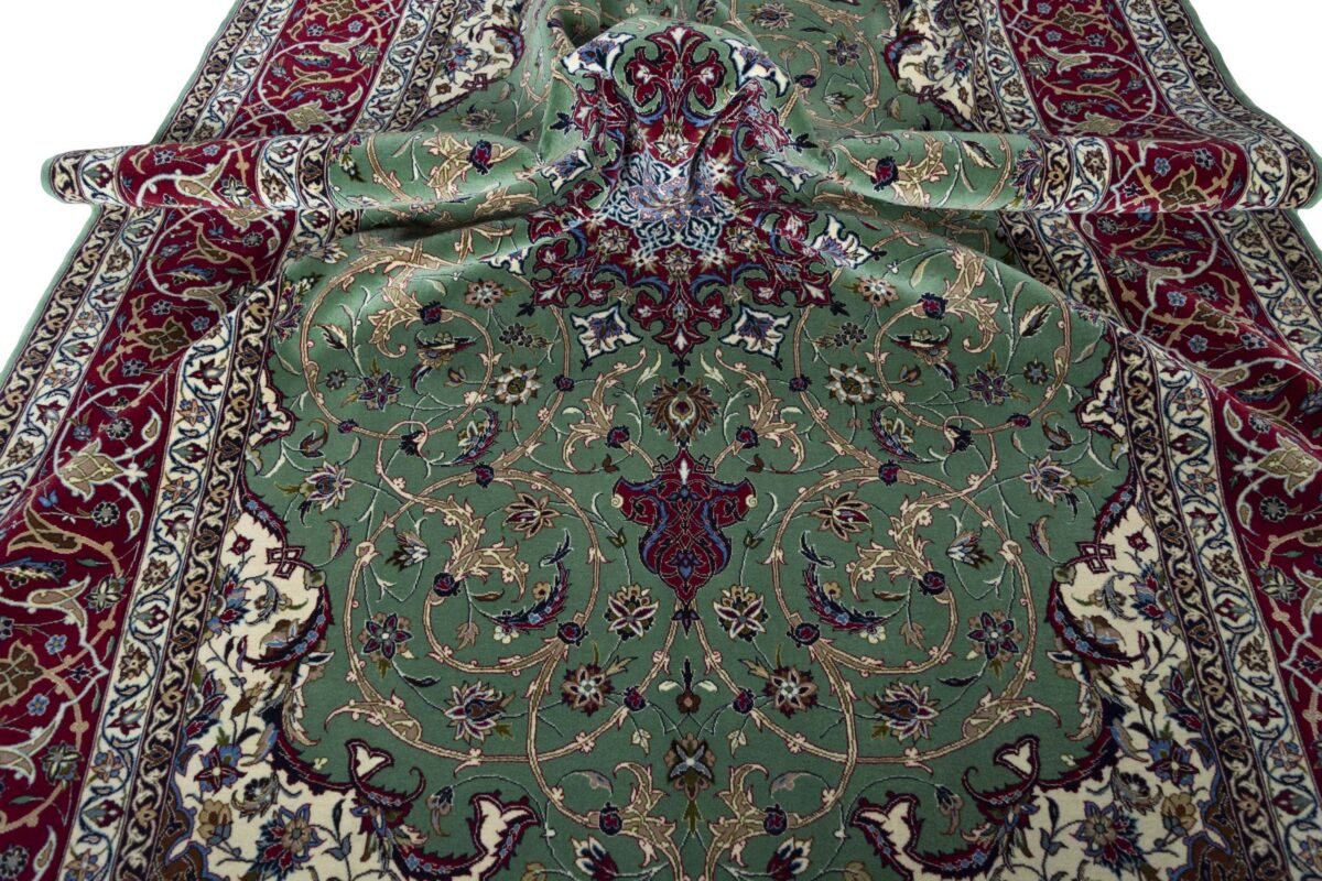 Beim echten Isfahan-Orientteppich werden nur erlesene Wollqualitäten verwendet, wobei der Flor manchmal durch einen Seidenanteil veredelt wird. Es finden sich auch besonders feingeknüpfte Isfahan-Teppiche, deren Kette aus 100% Seide besteht. Das Design ist oft von den städtischen Kunstbauten inspiriert, daher ist das Schah-Abbas-Muster aus Arabesken-, Lotus- und Palmetten-Motiven charakteristisch. Online kaufen lassen sich außerdem ausgewählte Teppiche mit figürlichen Darstellungen. Doch egal, welches Muster Ihnen am besten gefällt, ein Perserteppich aus Isfahans Manufakturen gilt weltweit immer als hochwertiger Teppich!