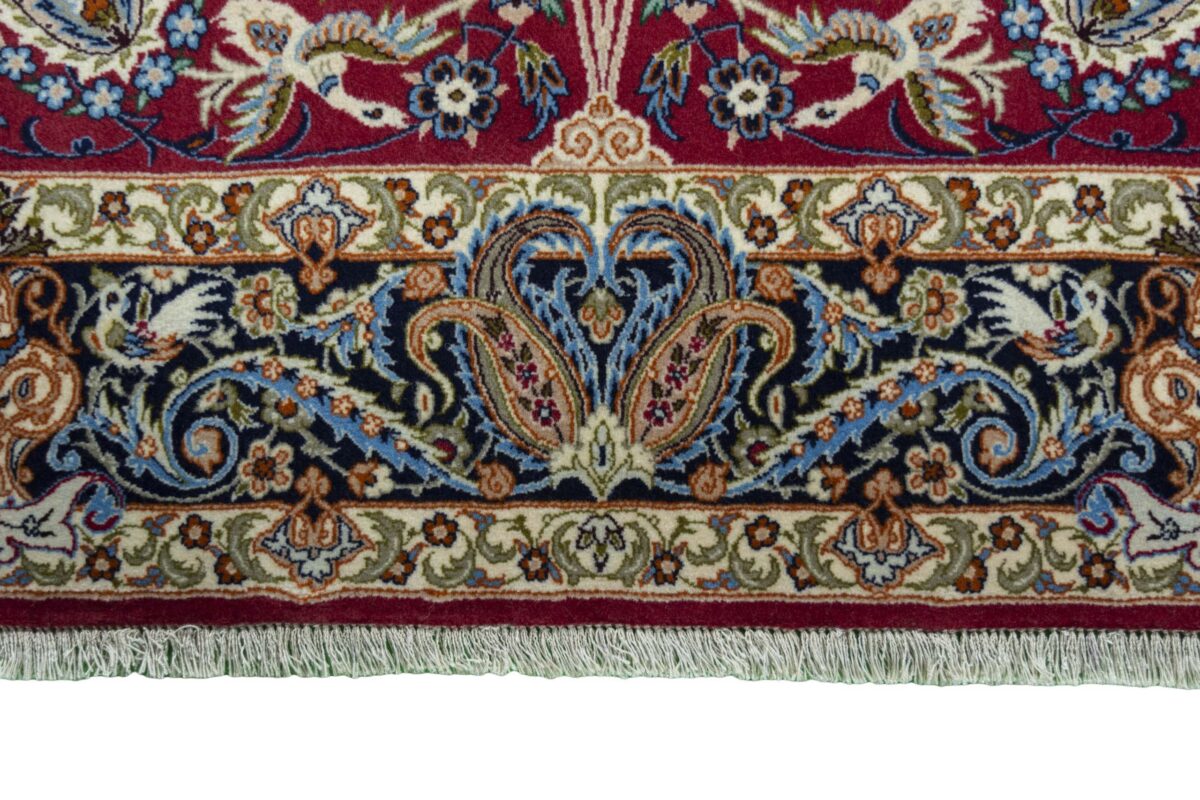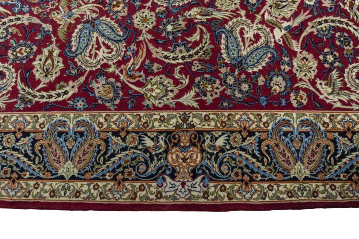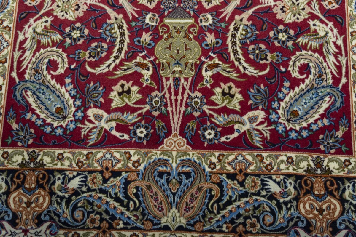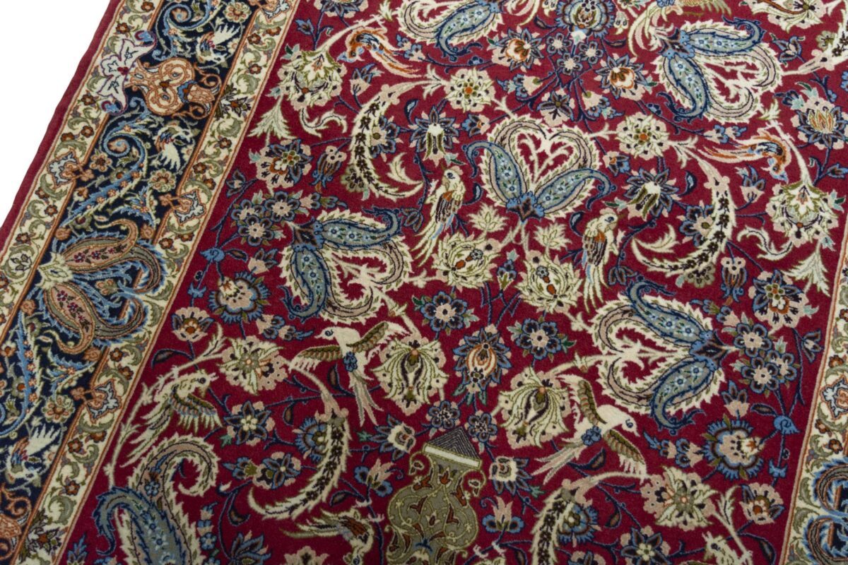 Beim echten Isfahan-Orientteppich werden nur erlesene Wollqualitäten verwendet, wobei der Flor manchmal durch einen Seidenanteil veredelt wird. Es finden sich auch besonders feingeknüpfte Isfahan-Teppiche, deren Kette aus 100% Seide besteht. Das Design ist oft von den städtischen Kunstbauten inspiriert, daher ist das Schah-Abbas-Muster aus Arabesken-, Lotus- und Palmetten-Motiven charakteristisch. Online kaufen lassen sich außerdem ausgewählte Teppiche mit figürlichen Darstellungen. Doch egal, welches Muster Ihnen am besten gefällt, ein Perserteppich aus Isfahans Manufakturen gilt weltweit immer als hochwertiger Teppich!