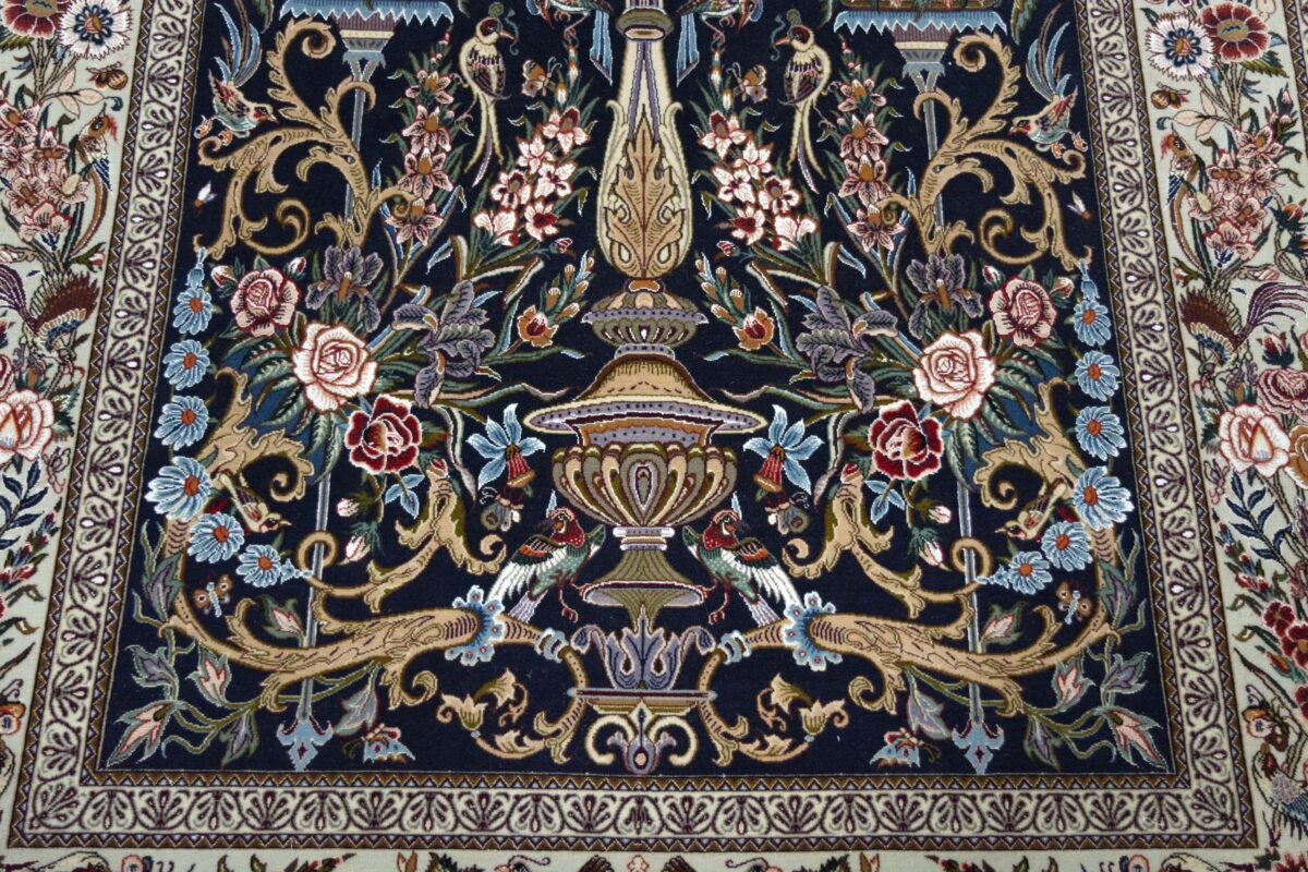 Beim echten Isfahan-Orientteppich werden nur erlesene Wollqualitäten verwendet, wobei der Flor manchmal durch einen Seidenanteil veredelt wird. Es finden sich auch besonders feingeknüpfte Isfahan-Teppiche, deren Kette aus 100% Seide besteht. Das Design ist oft von den städtischen Kunstbauten inspiriert, daher ist das Schah-Abbas-Muster aus Arabesken-, Lotus- und Palmetten-Motiven charakteristisch. Online kaufen lassen sich außerdem ausgewählte Teppiche mit figürlichen Darstellungen. Doch egal, welches Muster Ihnen am besten gefällt, ein Perserteppich aus Isfahans Manufakturen gilt weltweit immer als hochwertiger Teppich!