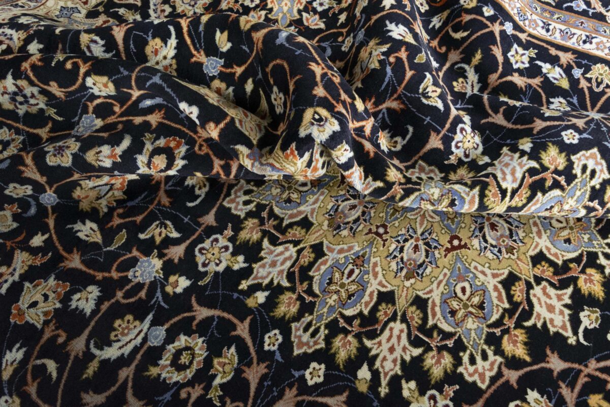 Beim echten Isfahan-Orientteppich werden nur erlesene Wollqualitäten verwendet, wobei der Flor manchmal durch einen Seidenanteil veredelt wird. Es finden sich auch besonders feingeknüpfte Isfahan-Teppiche, deren Kette aus 100% Seide besteht. Das Design ist oft von den städtischen Kunstbauten inspiriert, daher ist das Schah-Abbas-Muster aus Arabesken-, Lotus- und Palmetten-Motiven charakteristisch. Online kaufen lassen sich außerdem ausgewählte Teppiche mit figürlichen Darstellungen. Doch egal, welches Muster Ihnen am besten gefällt, ein Perserteppich aus Isfahans Manufakturen gilt weltweit immer als hochwertiger Teppich!