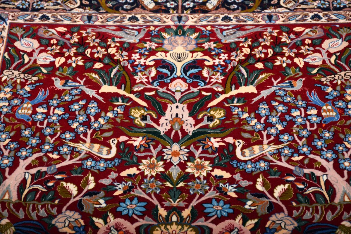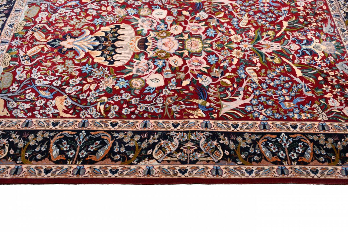 Beim echten Isfahan-Orientteppich werden nur erlesene Wollqualitäten verwendet, wobei der Flor manchmal durch einen Seidenanteil veredelt wird. Es finden sich auch besonders feingeknüpfte Isfahan-Teppiche, deren Kette aus 100% Seide besteht. Das Design ist oft von den städtischen Kunstbauten inspiriert, daher ist das Schah-Abbas-Muster aus Arabesken-, Lotus- und Palmetten-Motiven charakteristisch. Online kaufen lassen sich außerdem ausgewählte Teppiche mit figürlichen Darstellungen. Doch egal, welches Muster Ihnen am besten gefällt, ein Perserteppich aus Isfahans Manufakturen gilt weltweit immer als hochwertiger Teppich!