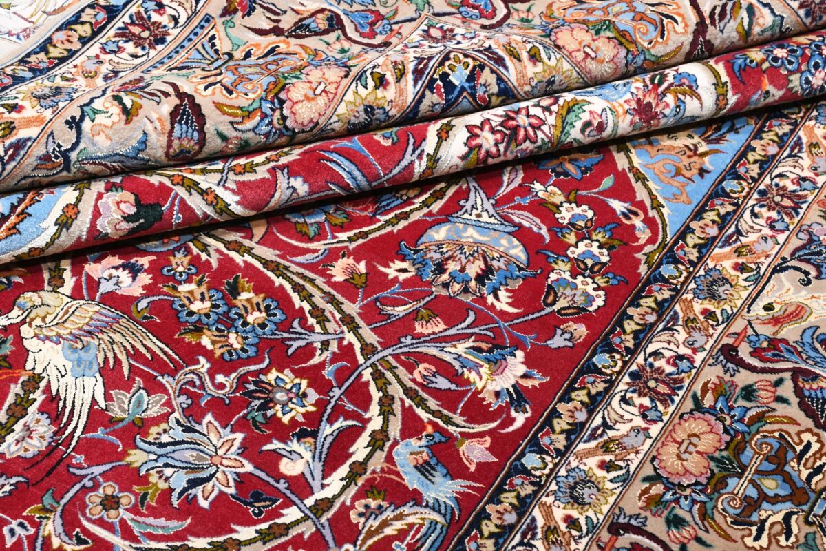 Beim echten Isfahan-Orientteppich werden nur erlesene Wollqualitäten verwendet, wobei der Flor manchmal durch einen Seidenanteil veredelt wird. Es finden sich auch besonders feingeknüpfte Isfahan-Teppiche, deren Kette aus 100% Seide besteht. Das Design ist oft von den städtischen Kunstbauten inspiriert, daher ist das Schah-Abbas-Muster aus Arabesken-, Lotus- und Palmetten-Motiven charakteristisch. Online kaufen lassen sich außerdem ausgewählte Teppiche mit figürlichen Darstellungen. Doch egal, welches Muster Ihnen am besten gefällt, ein Perserteppich aus Isfahans Manufakturen gilt weltweit immer als hochwertiger Teppich!
