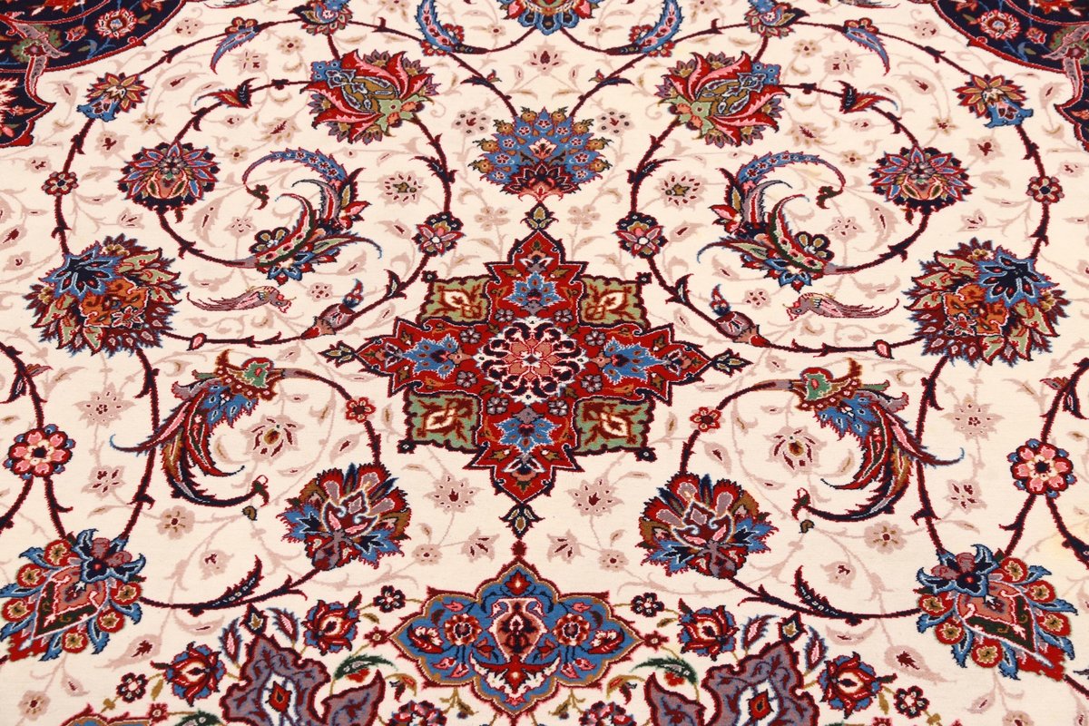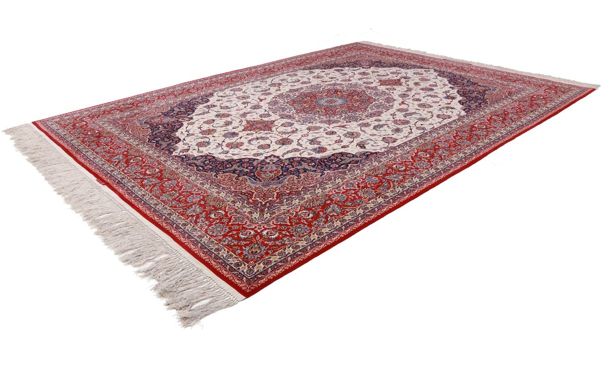 Beim echten Isfahan-Orientteppich werden nur erlesene Wollqualitäten verwendet, wobei der Flor manchmal durch einen Seidenanteil veredelt wird. Es finden sich auch besonders feingeknüpfte Isfahan-Teppiche, deren Kette aus 100% Seide besteht. Das Design ist oft von den städtischen Kunstbauten inspiriert, daher ist das Schah-Abbas-Muster aus Arabesken-, Lotus- und Palmetten-Motiven charakteristisch. Online kaufen lassen sich außerdem ausgewählte Teppiche mit figürlichen Darstellungen. Doch egal, welches Muster Ihnen am besten gefällt, ein Perserteppich aus Isfahans Manufakturen gilt weltweit immer als hochwertiger Teppich!