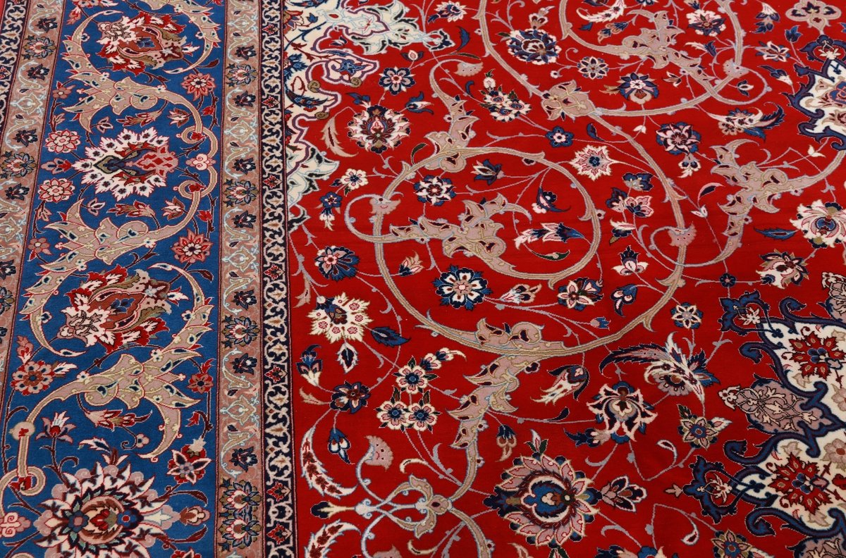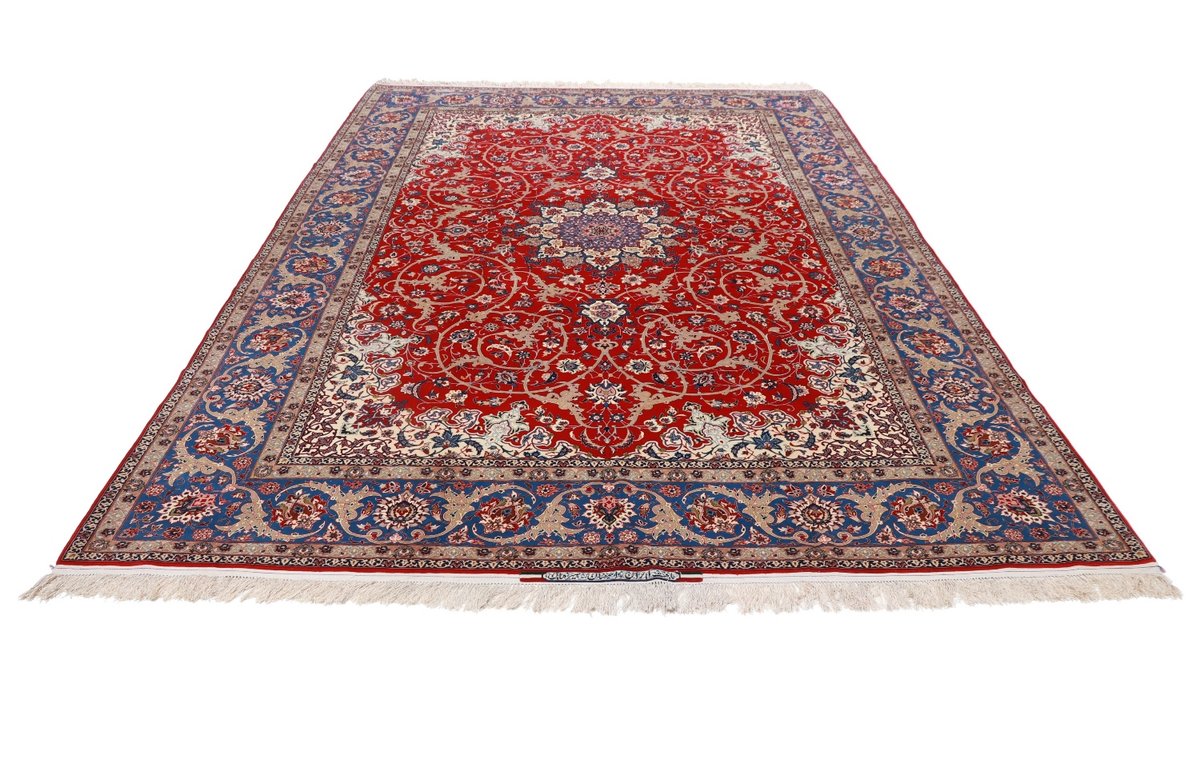 Beim echten Isfahan-Orientteppich werden nur erlesene Wollqualitäten verwendet, wobei der Flor manchmal durch einen Seidenanteil veredelt wird. Es finden sich auch besonders feingeknüpfte Isfahan-Teppiche, deren Kette aus 100% Seide besteht. Das Design ist oft von den städtischen Kunstbauten inspiriert, daher ist das Schah-Abbas-Muster aus Arabesken-, Lotus- und Palmetten-Motiven charakteristisch. Online kaufen lassen sich außerdem ausgewählte Teppiche mit figürlichen Darstellungen. Doch egal, welches Muster Ihnen am besten gefällt, ein Perserteppich aus Isfahans Manufakturen gilt weltweit immer als hochwertiger Teppich!