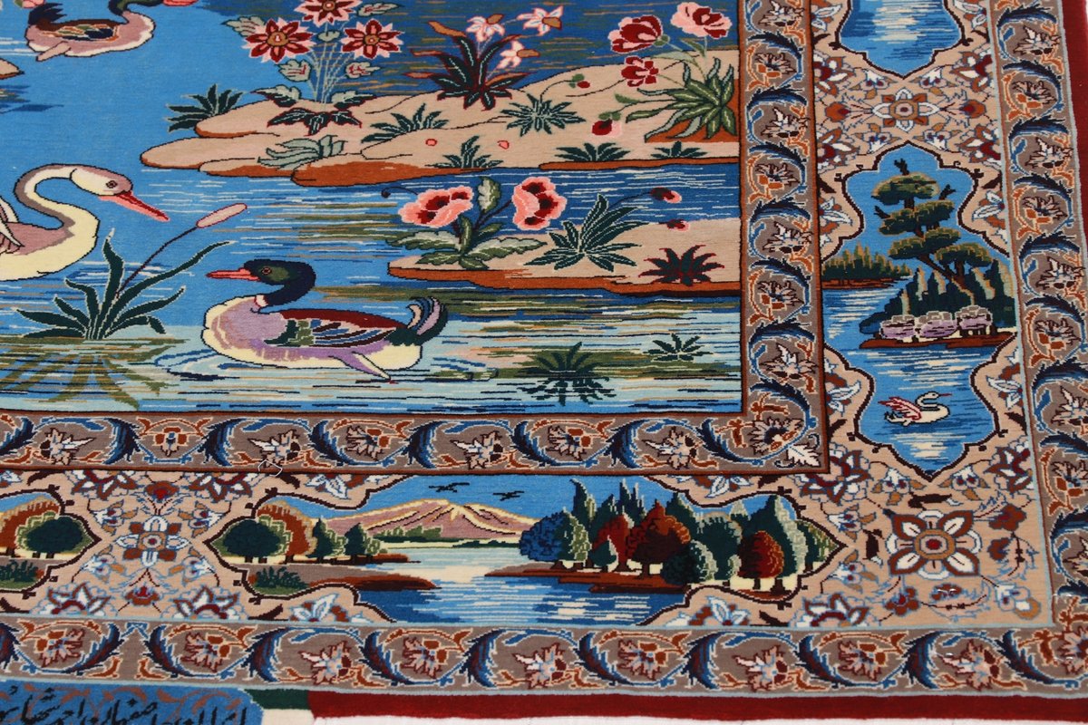 Beim echten Isfahan-Orientteppich werden nur erlesene Wollqualitäten verwendet, wobei der Flor manchmal durch einen Seidenanteil veredelt wird. Es finden sich auch besonders feingeknüpfte Isfahan-Teppiche, deren Kette aus 100% Seide besteht. Das Design ist oft von den städtischen Kunstbauten inspiriert, daher ist das Schah-Abbas-Muster aus Arabesken-, Lotus- und Palmetten-Motiven charakteristisch. Online kaufen lassen sich außerdem ausgewählte Teppiche mit figürlichen Darstellungen. Doch egal, welches Muster Ihnen am besten gefällt, ein Perserteppich aus Isfahans Manufakturen gilt weltweit immer als hochwertiger Teppich!