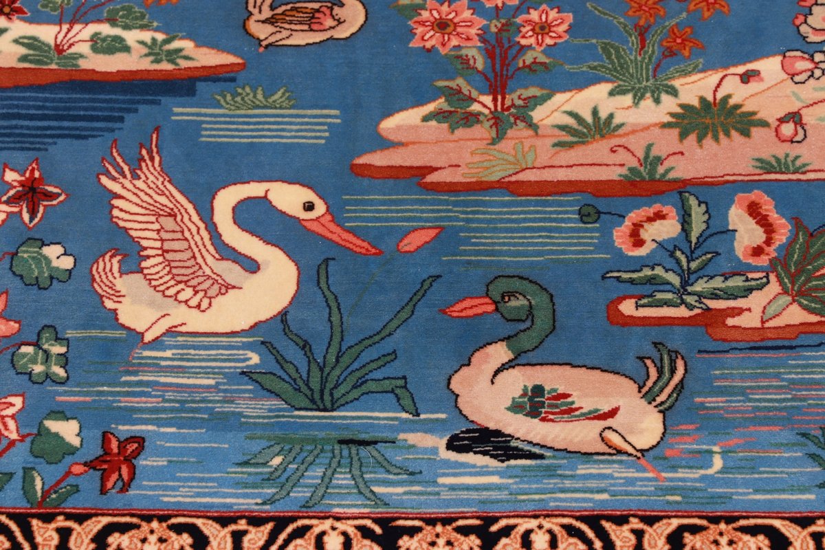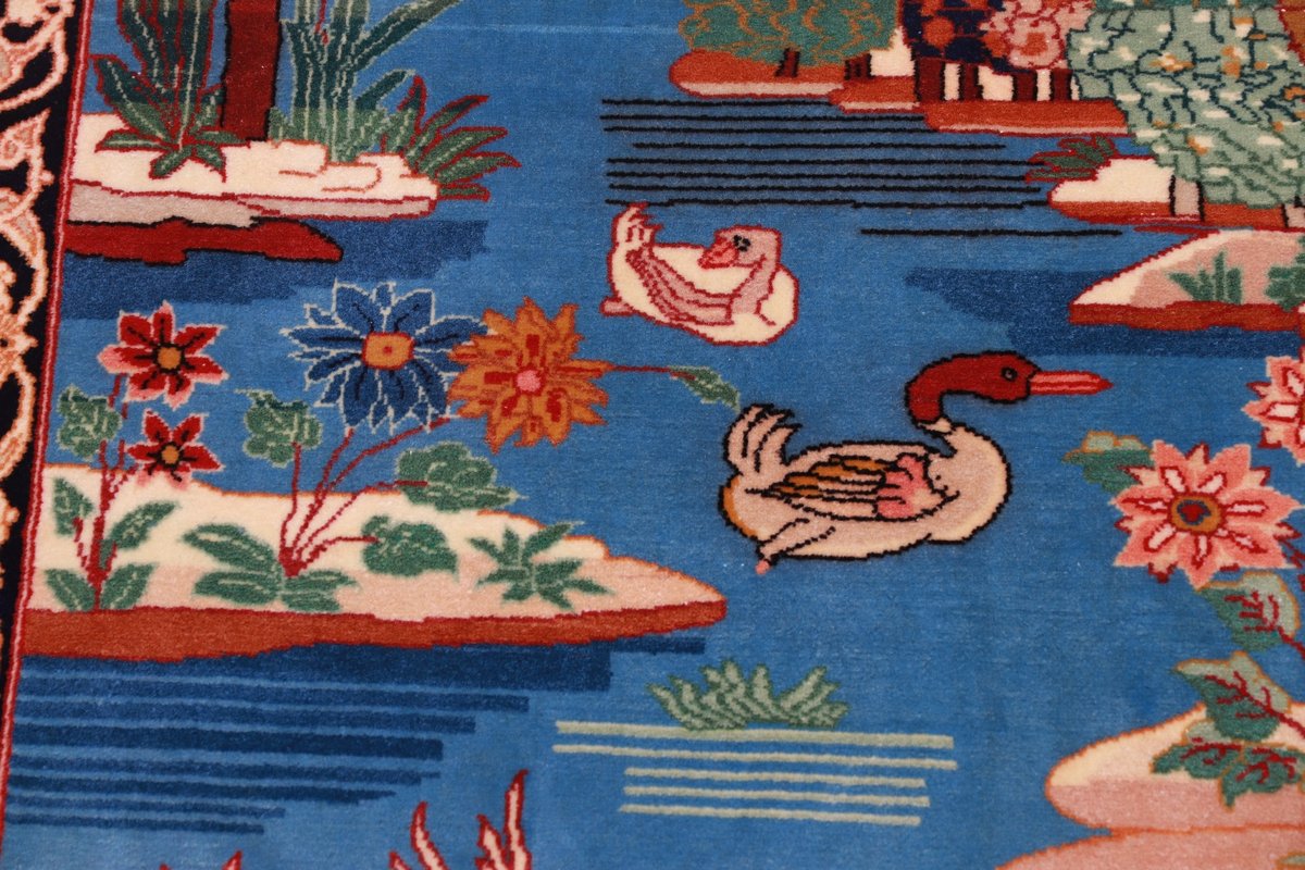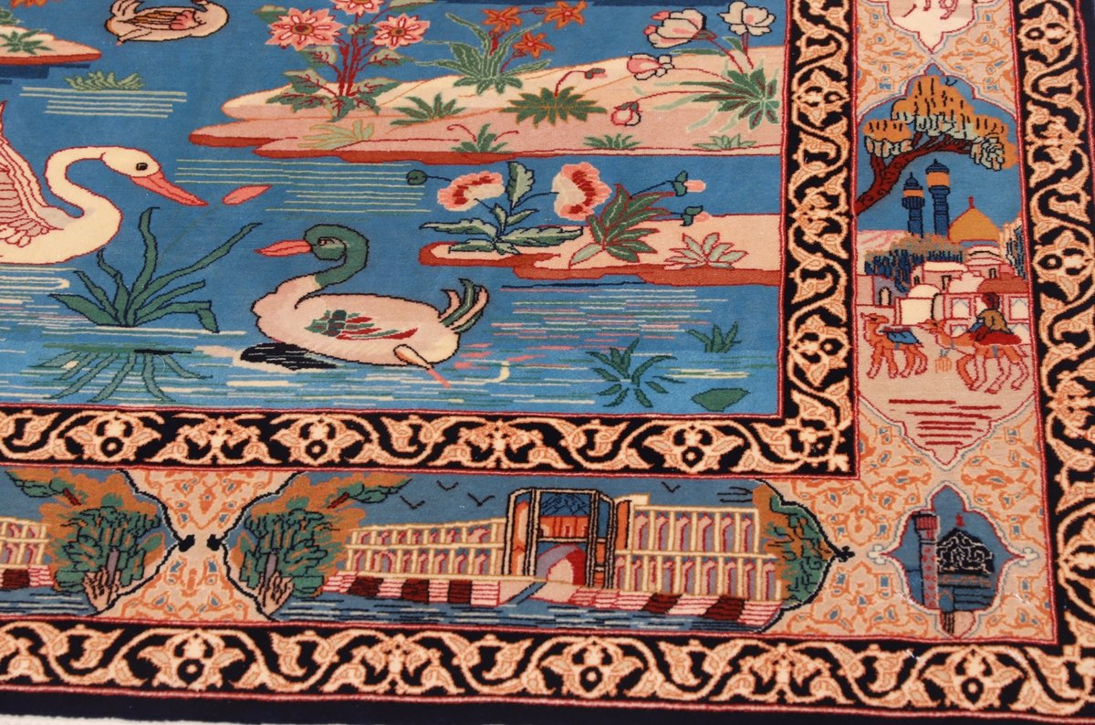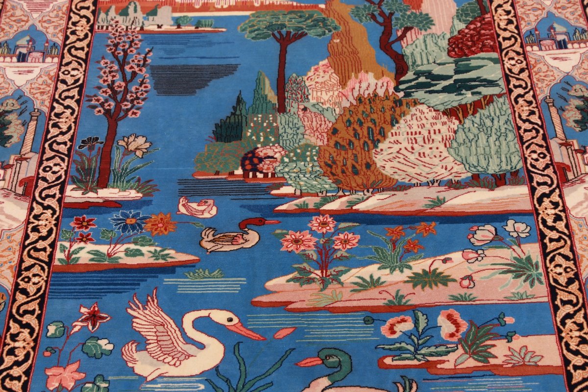 Beim echten Isfahan-Orientteppich werden nur erlesene Wollqualitäten verwendet, wobei der Flor manchmal durch einen Seidenanteil veredelt wird. Es finden sich auch besonders feingeknüpfte Isfahan-Teppiche, deren Kette aus 100% Seide besteht. Das Design ist oft von den städtischen Kunstbauten inspiriert, daher ist das Schah-Abbas-Muster aus Arabesken-, Lotus- und Palmetten-Motiven charakteristisch. Online kaufen lassen sich außerdem ausgewählte Teppiche mit figürlichen Darstellungen. Doch egal, welches Muster Ihnen am besten gefällt, ein Perserteppich aus Isfahans Manufakturen gilt weltweit immer als hochwertiger Teppich!
