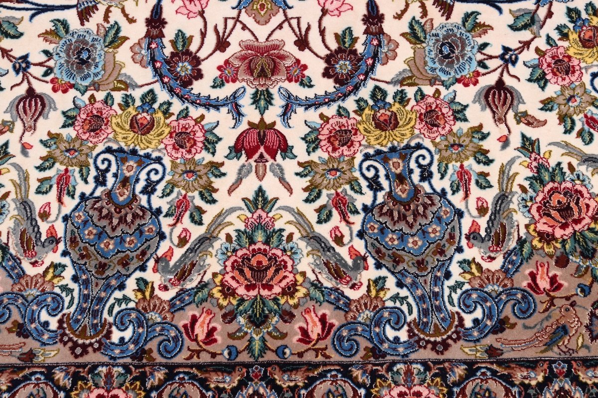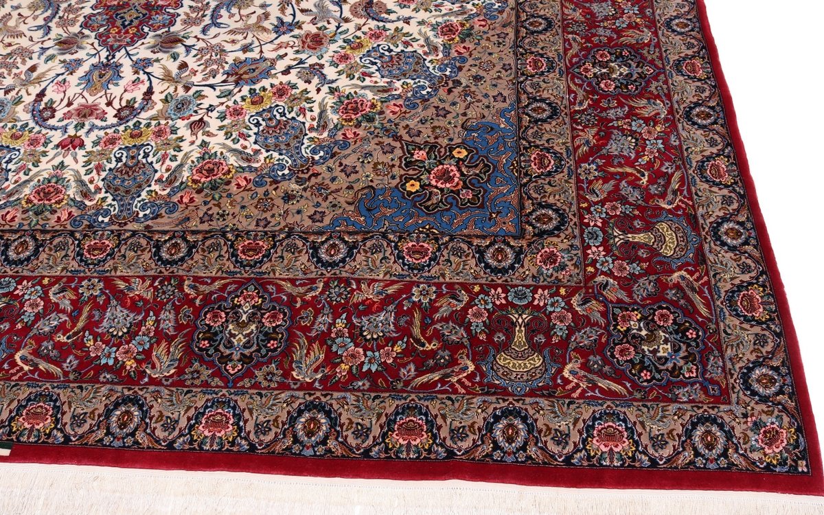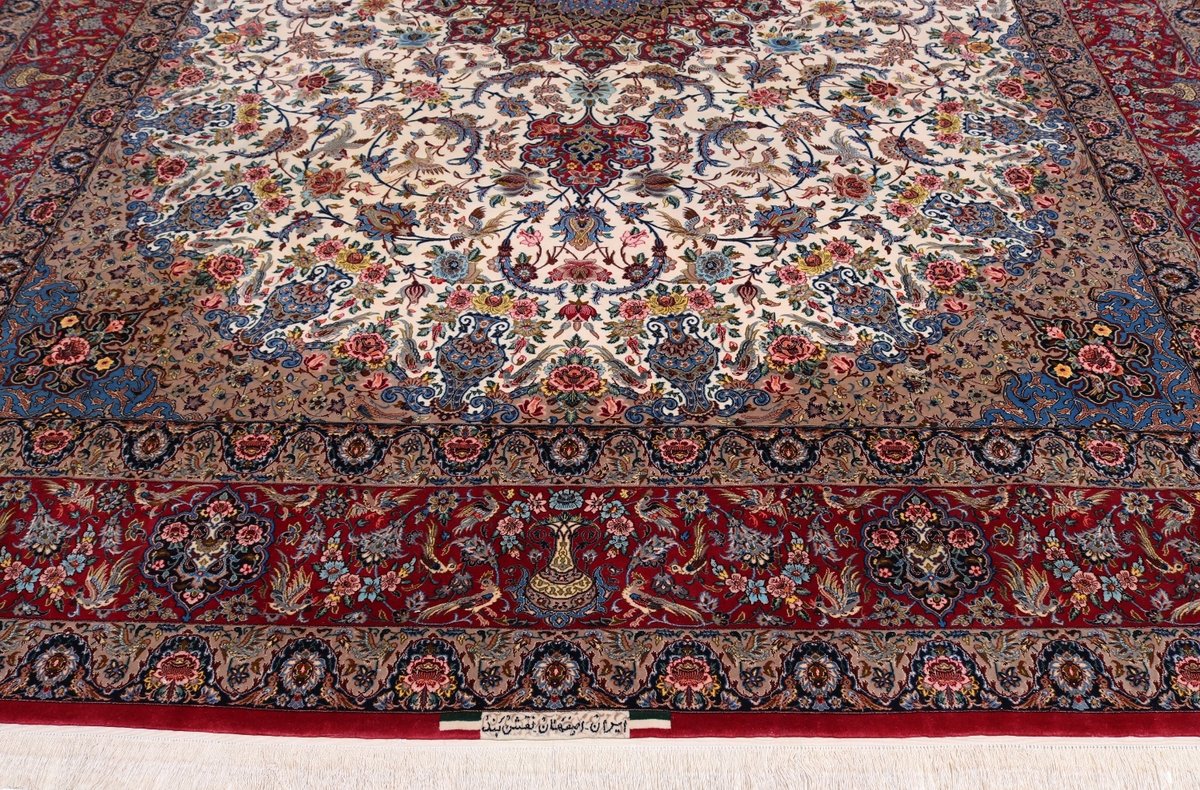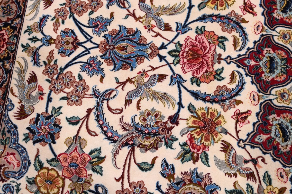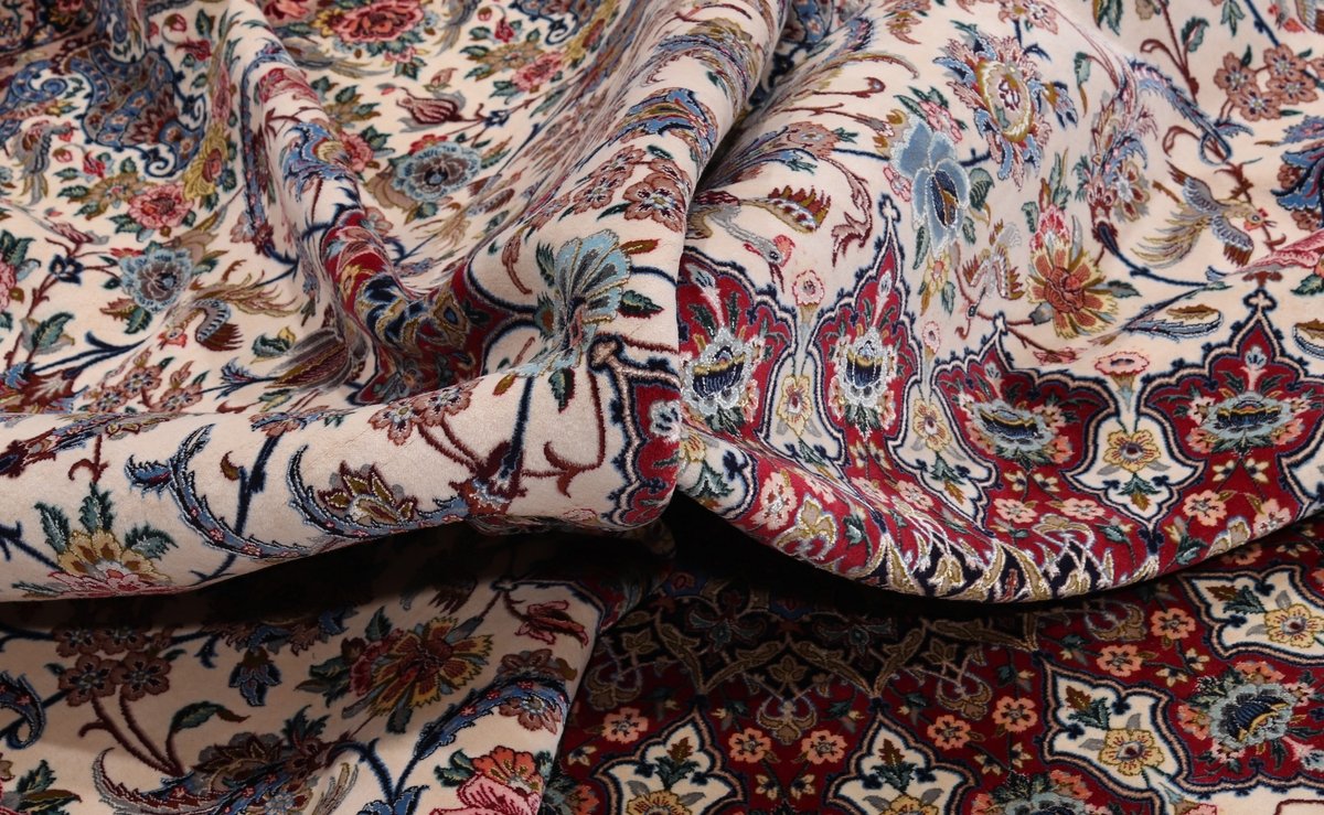 Beim echten Isfahan-Orientteppich werden nur erlesene Wollqualitäten verwendet, wobei der Flor manchmal durch einen Seidenanteil veredelt wird. Es finden sich auch besonders feingeknüpfte Isfahan-Teppiche, deren Kette aus 100% Seide besteht. Das Design ist oft von den städtischen Kunstbauten inspiriert, daher ist das Schah-Abbas-Muster aus Arabesken-, Lotus- und Palmetten-Motiven charakteristisch. Online kaufen lassen sich außerdem ausgewählte Teppiche mit figürlichen Darstellungen. Doch egal, welches Muster Ihnen am besten gefällt, ein Perserteppich aus Isfahans Manufakturen gilt weltweit immer als hochwertiger Teppich!