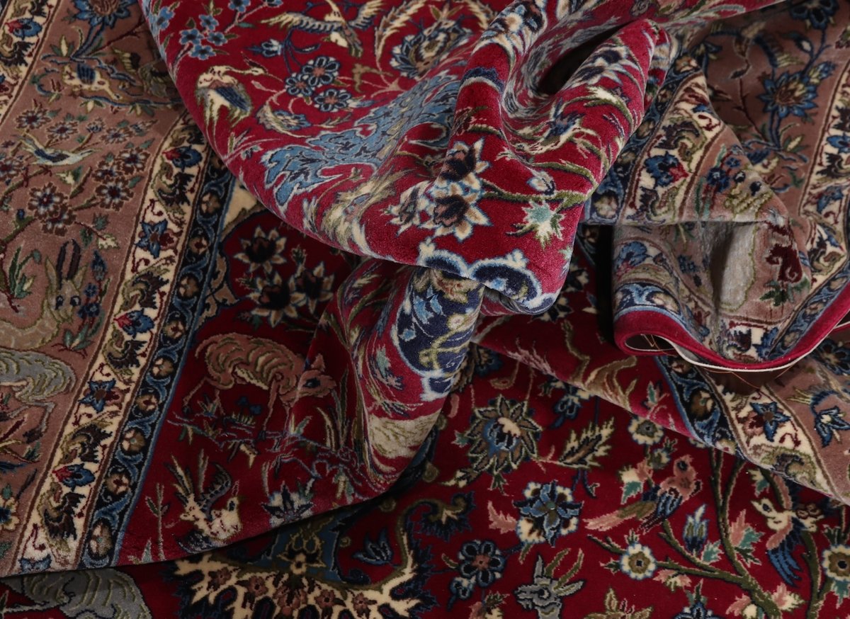 Beim echten Isfahan-Orientteppich werden nur erlesene Wollqualitäten verwendet, wobei der Flor manchmal durch einen Seidenanteil veredelt wird. Es finden sich auch besonders feingeknüpfte Isfahan-Teppiche, deren Kette aus 100% Seide besteht. Das Design ist oft von den städtischen Kunstbauten inspiriert, daher ist das Schah-Abbas-Muster aus Arabesken-, Lotus- und Palmetten-Motiven charakteristisch. Online kaufen lassen sich außerdem ausgewählte Teppiche mit figürlichen Darstellungen. Doch egal, welches Muster Ihnen am besten gefällt, ein Perserteppich aus Isfahans Manufakturen gilt weltweit immer als hochwertiger Teppich!