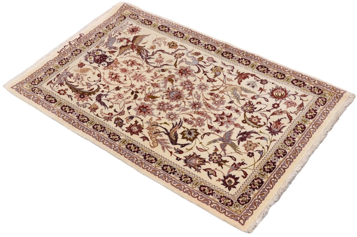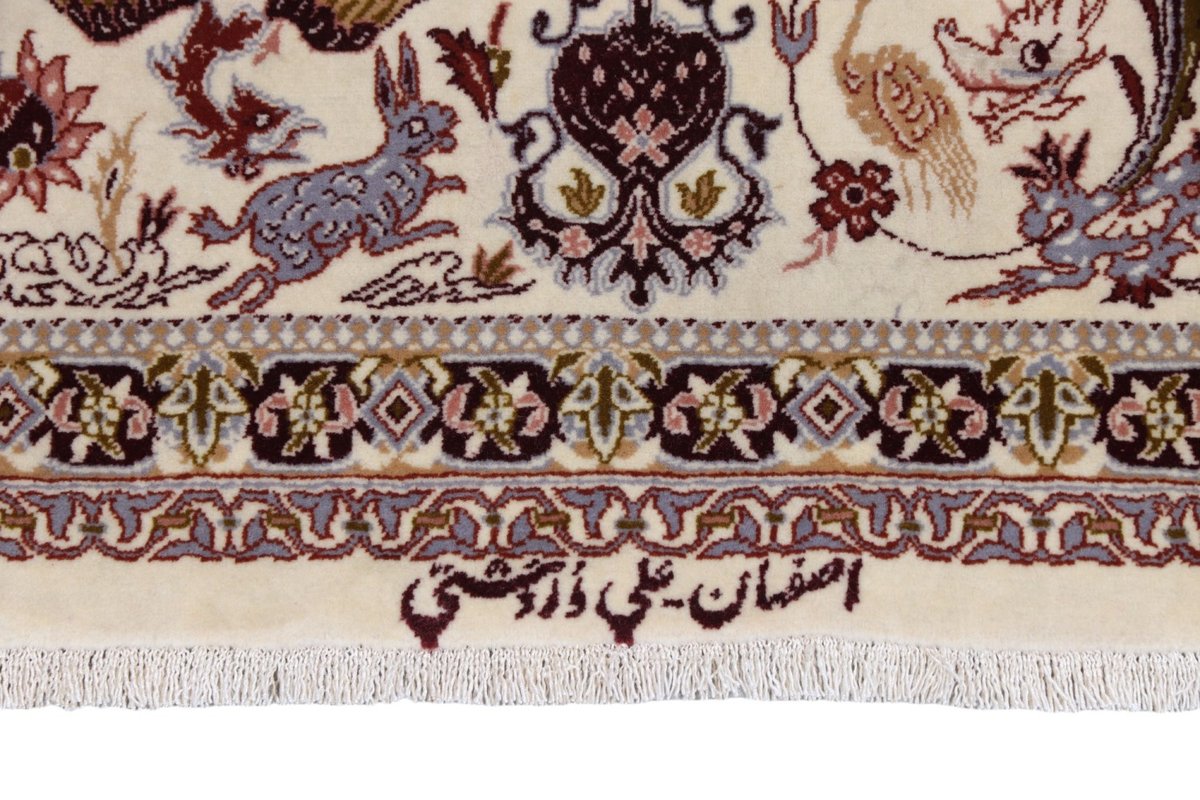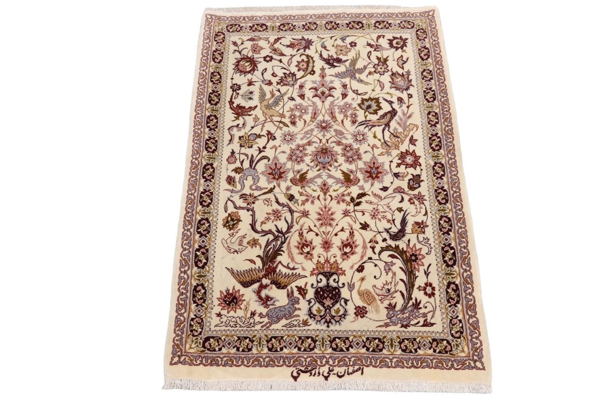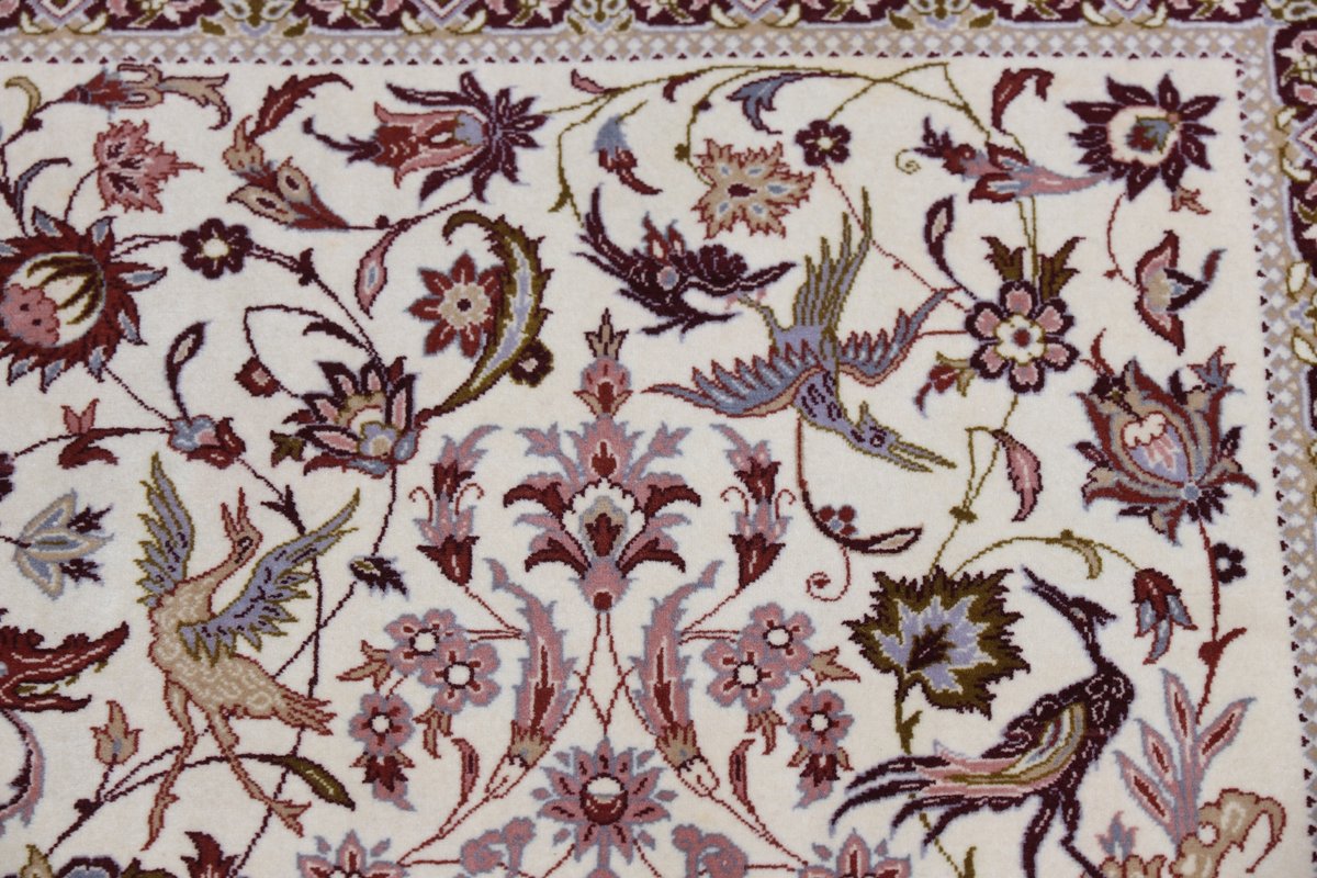 Beim echten Isfahan-Orientteppich werden nur erlesene Wollqualitäten verwendet, wobei der Flor manchmal durch einen Seidenanteil veredelt wird. Es finden sich auch besonders feingeknüpfte Isfahan-Teppiche, deren Kette aus 100% Seide besteht. Das Design ist oft von den städtischen Kunstbauten inspiriert, daher ist das Schah-Abbas-Muster aus Arabesken-, Lotus- und Palmetten-Motiven charakteristisch. Online kaufen lassen sich außerdem ausgewählte Teppiche mit figürlichen Darstellungen. Doch egal, welches Muster Ihnen am besten gefällt, ein Perserteppich aus Isfahans Manufakturen gilt weltweit immer als hochwertiger Teppich!