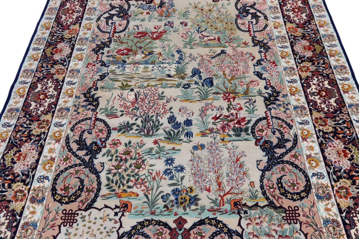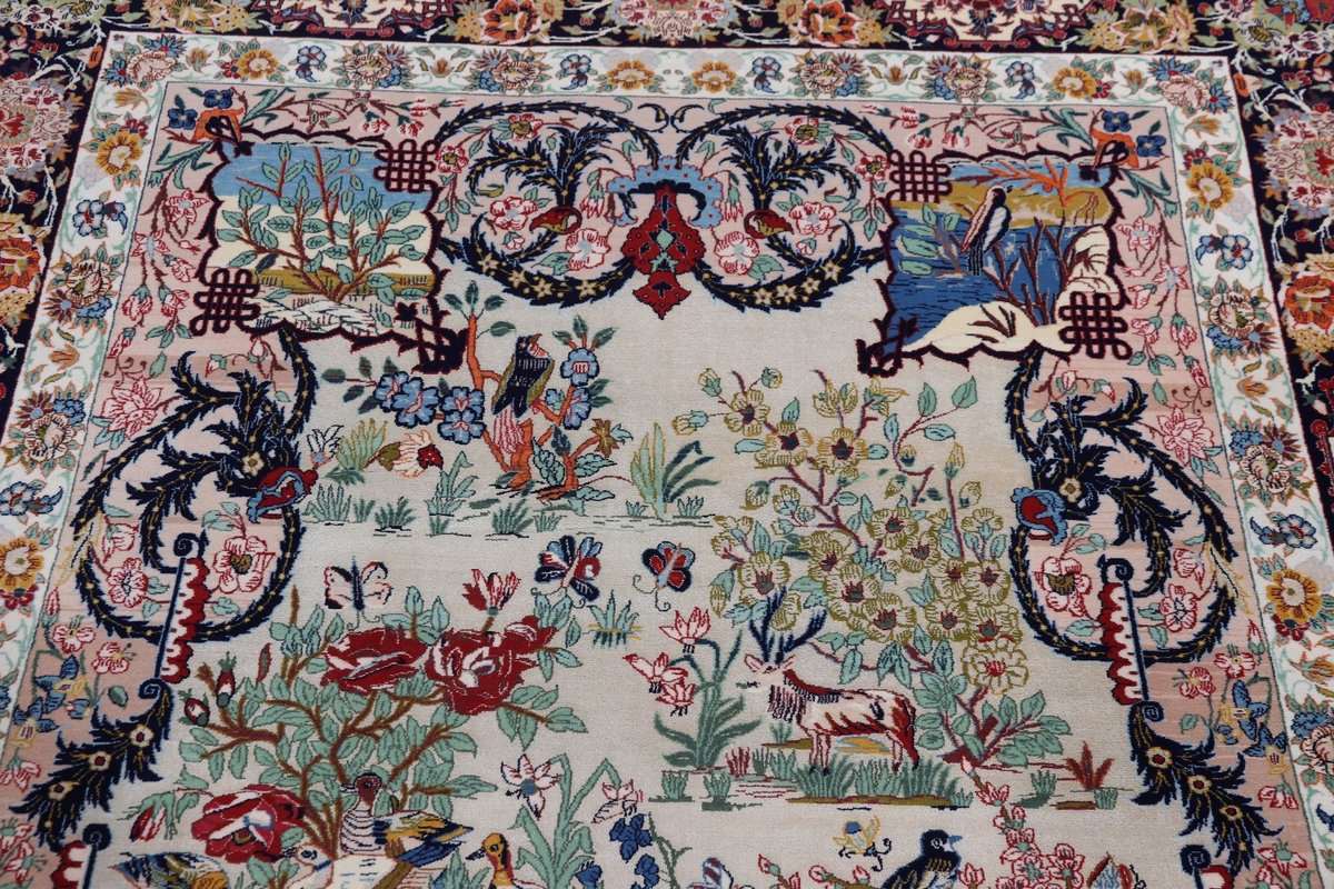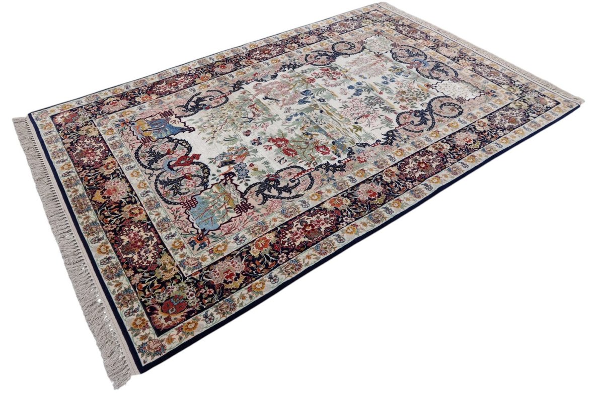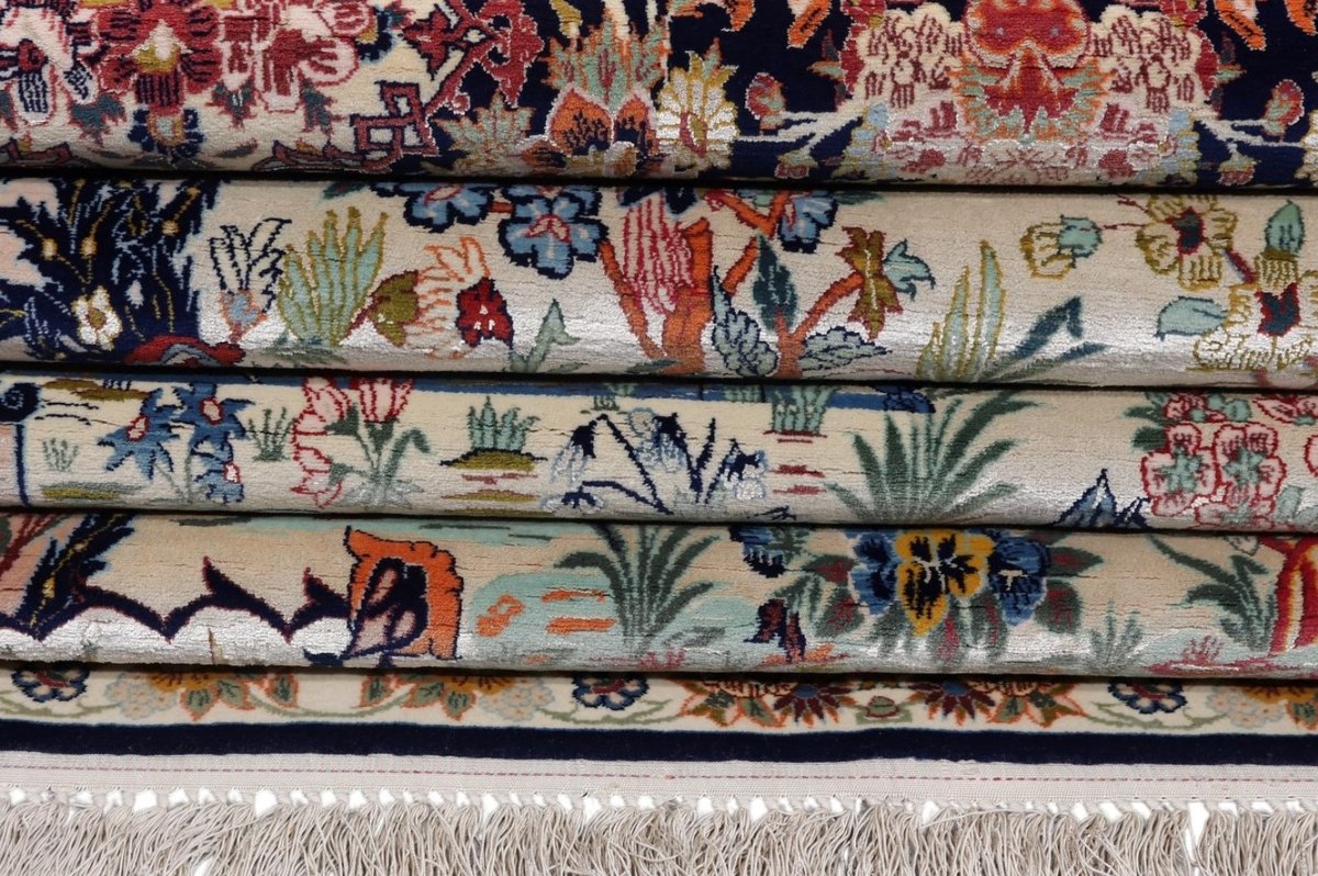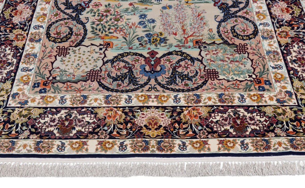 Beim echten Isfahan-Orientteppich werden nur erlesene Wollqualitäten verwendet, wobei der Flor manchmal durch einen Seidenanteil veredelt wird. Es finden sich auch besonders feingeknüpfte Isfahan-Teppiche, deren Kette aus 100% Seide besteht. Das Design ist oft von den städtischen Kunstbauten inspiriert, daher ist das Schah-Abbas-Muster aus Arabesken-, Lotus- und Palmetten-Motiven charakteristisch. Online kaufen lassen sich außerdem ausgewählte Teppiche mit figürlichen Darstellungen. Doch egal, welches Muster Ihnen am besten gefällt, ein Perserteppich aus Isfahans Manufakturen gilt weltweit immer als hochwertiger Teppich!