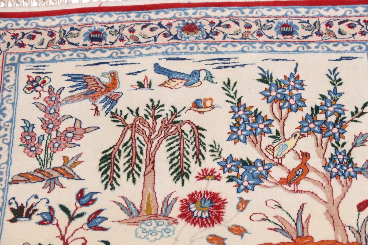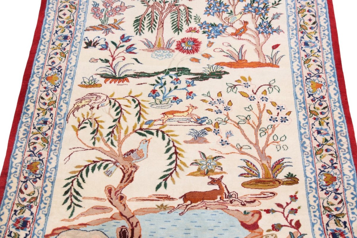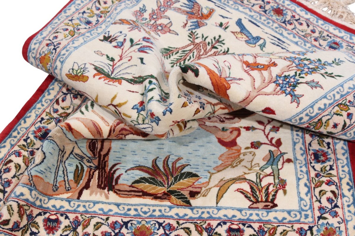 Beim echten Isfahan-Orientteppich werden nur erlesene Wollqualitäten verwendet, wobei der Flor manchmal durch einen Seidenanteil veredelt wird. Es finden sich auch besonders feingeknüpfte Isfahan-Teppiche, deren Kette aus 100% Seide besteht. Das Design ist oft von den städtischen Kunstbauten inspiriert, daher ist das Schah-Abbas-Muster aus Arabesken-, Lotus- und Palmetten-Motiven charakteristisch. Online kaufen lassen sich außerdem ausgewählte Teppiche mit figürlichen Darstellungen. Doch egal, welches Muster Ihnen am besten gefällt, ein Perserteppich aus Isfahans Manufakturen gilt weltweit immer als hochwertiger Teppich!