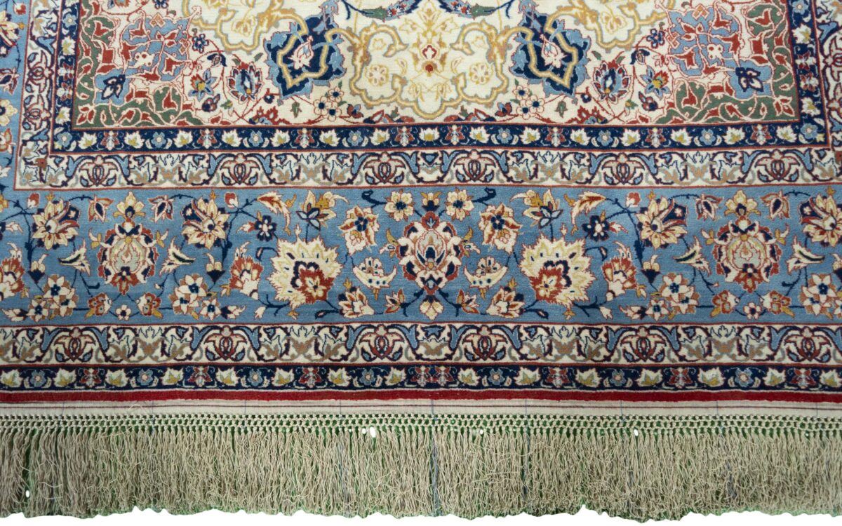 Beim echten Isfahan-Orientteppich werden nur erlesene Wollqualitäten verwendet, wobei der Flor manchmal durch einen Seidenanteil veredelt wird. Es finden sich auch besonders feingeknüpfte Isfahan-Teppiche, deren Kette aus 100% Seide besteht. Das Design ist oft von den städtischen Kunstbauten inspiriert, daher ist das Schah-Abbas-Muster aus Arabesken-, Lotus- und Palmetten-Motiven charakteristisch. Online kaufen lassen sich außerdem ausgewählte Teppiche mit figürlichen Darstellungen. Doch egal, welches Muster Ihnen am besten gefällt, ein Perserteppich aus Isfahans Manufakturen gilt weltweit immer als hochwertiger Teppich!