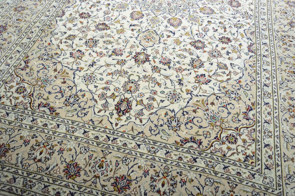 Florale Muster und harmonische Farbkompositionen gelten seit jeher als klassisch und machen auch den zeitlosen Charme des beliebten Kashan-Perserteppichs aus. Besonders für alle, die sich beim Online-Kaufen nur schwer für einen bestimmten Orientteppich entscheiden können, ist der Kashan-Perserteppich ein wertvoller Tipp. Denn dieser Orientteppich aus Kashan, einer Stadt in der berühmten iranischen Isfahan-Provinz, zählt mit seiner typisch-persischen Ornamentik und der langen Tradition zu den Klassikern der orientalischen Teppichknüpfkunst. Dank seines ausgewogenen Designs passt er fast zu jedem Einrichtungsstil und kann in Großformat Wohnräumen sogar ein majestätisches Ambiente verleihen.