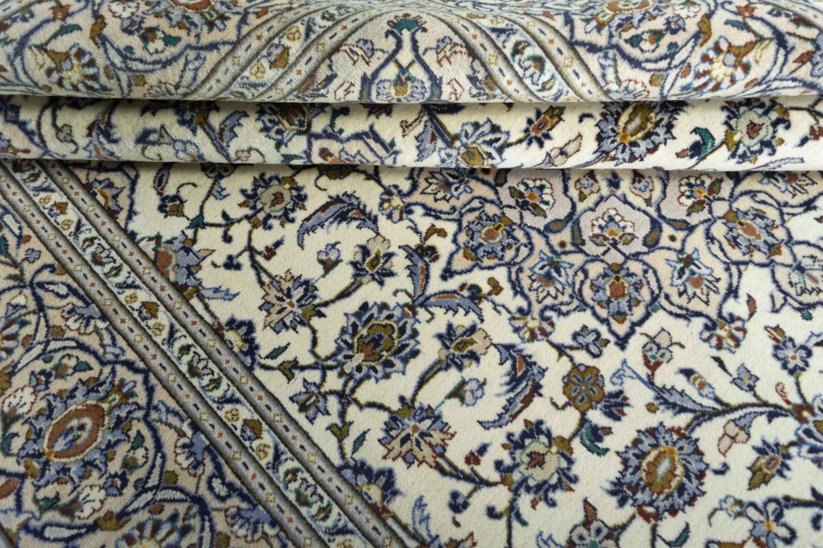 Florale Muster und harmonische Farbkompositionen gelten seit jeher als klassisch und machen auch den zeitlosen Charme des beliebten Kashan-Perserteppichs aus. Besonders für alle, die sich beim Online-Kaufen nur schwer für einen bestimmten Orientteppich entscheiden können, ist der Kashan-Perserteppich ein wertvoller Tipp. Denn dieser Orientteppich aus Kashan, einer Stadt in der berühmten iranischen Isfahan-Provinz, zählt mit seiner typisch-persischen Ornamentik und der langen Tradition zu den Klassikern der orientalischen Teppichknüpfkunst. Dank seines ausgewogenen Designs passt er fast zu jedem Einrichtungsstil und kann in Großformat Wohnräumen sogar ein majestätisches Ambiente verleihen.