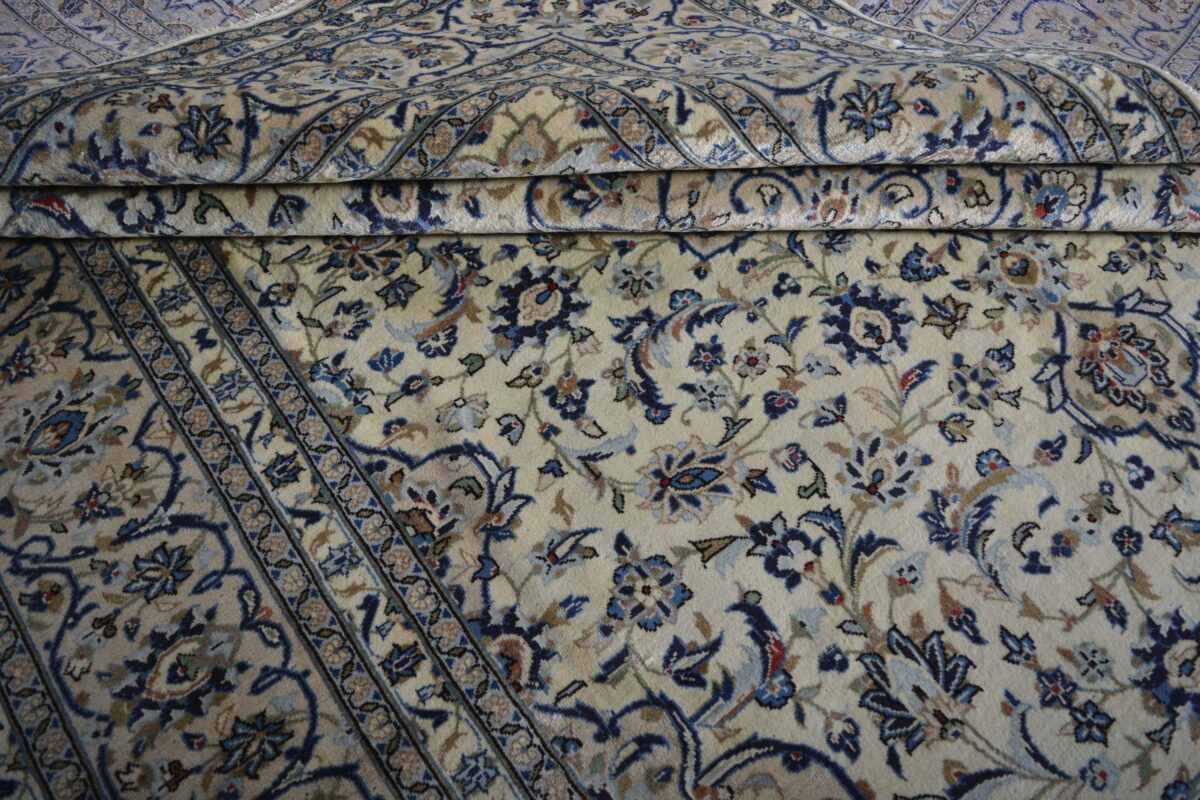 Ein typischer Kashan-Perserteppich wird aus Schurwolle auf Baumwollkette geknüpft. Klassisch ist auch die Verwendung des asymmetrischen Senneh- bzw. Perserknotens. Die Knüpfdichte kann unterschiedlich ausfallen und erreicht bei manchen unserer feinsten Exemplare weit mehr als 500.000 Knoten/m². Ein exklusiver Tipp sind außerdem unsere antiken Kashan-Teppiche aus hochwertiger Manchesterwolle – diese können Sie als Sammlerstücke ebenso bei MyTepp online kaufen.
