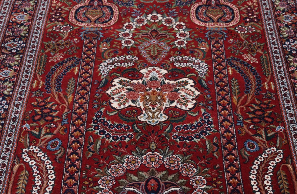 Florale Muster und harmonische Farbkompositionen gelten seit jeher als klassisch und machen auch den zeitlosen Charme des beliebten Kashan-Perserteppichs aus. Besonders für alle, die sich beim Online-Kaufen nur schwer für einen bestimmten Orientteppich entscheiden können, ist der Kashan-Perserteppich ein wertvoller Tipp. Denn dieser Orientteppich aus Kashan, einer Stadt in der berühmten iranischen Isfahan-Provinz, zählt mit seiner typisch-persischen Ornamentik und der langen Tradition zu den Klassikern der orientalischen Teppichknüpfkunst. Dank seines ausgewogenen Designs passt er fast zu jedem Einrichtungsstil und kann in Großformat Wohnräumen sogar ein majestätisches Ambiente verleihen.