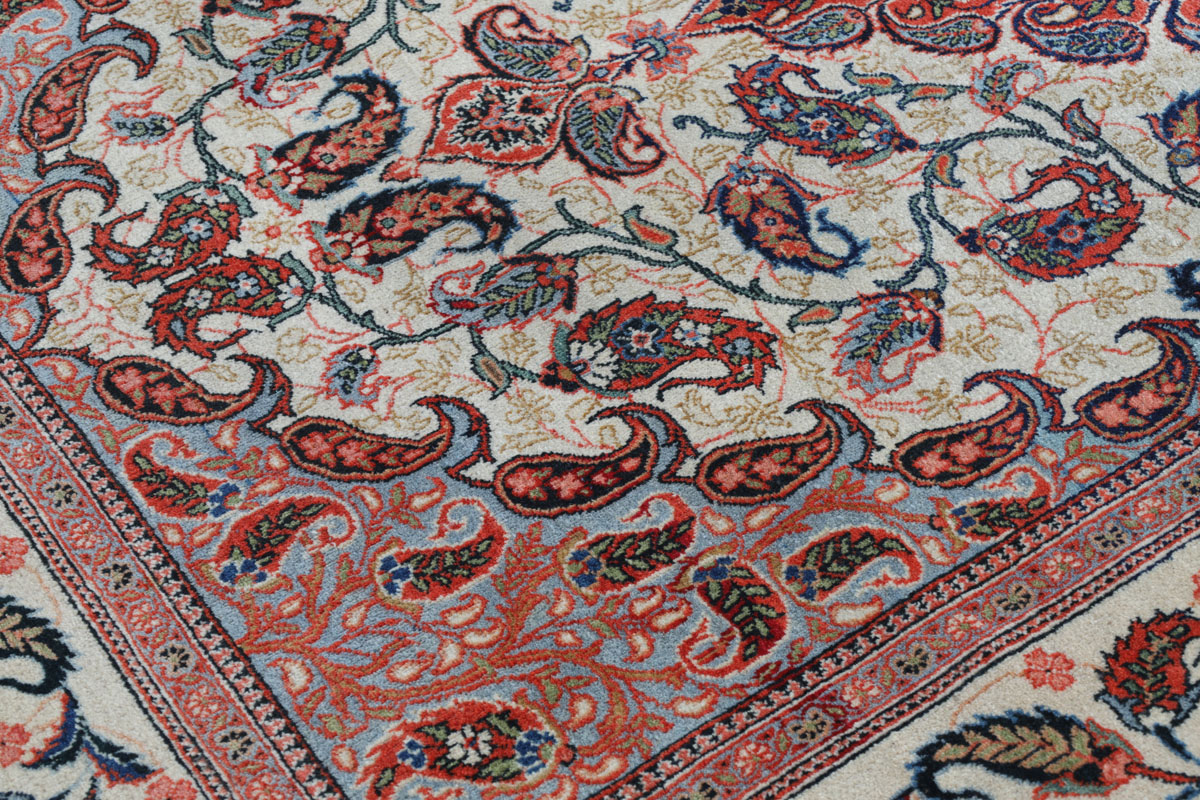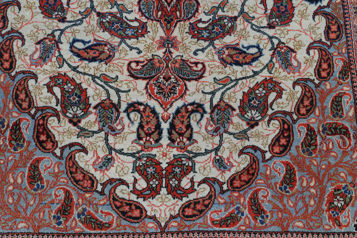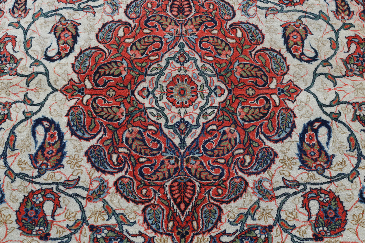 Wer hochwertige Teppiche online kaufen möchte, wird von der Farbenpracht und Mustervielfalt unserer Ghom-Seidenteppiche und der Ghom-Teppiche aus feinster Korkwolle beeindruckt sein. Günstig (bei mytepp) finden Sie bereits kleinere Formate mit erstaunlich detaillierter Knüpfung für traumhafte Wanddekorationen. Sehr empfehlenswert sind außerdem unsere erlesenen Ghom-Meisterknüpfungen mit Signatur aus professionellen Ateliers. Solch feine Teppiche wird man nicht immer online kaufenkönnen, denn auf Ghom-Teppiche spezialisierte Manufakturbetreiber finden heute kaum noch Nachfolger. Der Wert dieser Sammlerstücke aus Ghom, die Sie günstig (bei mytepp) erwerben können, wird also gewiss noch steigen.