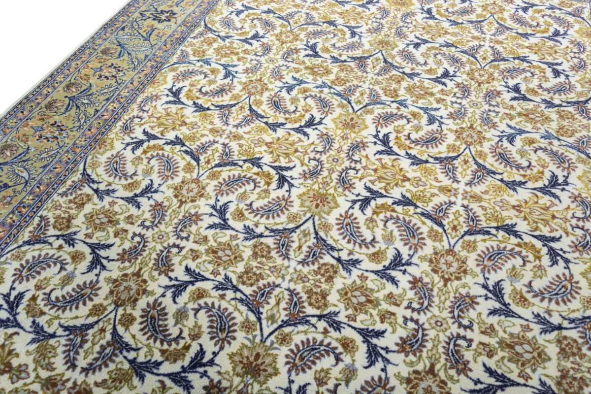 Florale Muster und harmonische Farbkompositionen gelten seit jeher als klassisch und machen auch den zeitlosen Charme des beliebten Kashan-Perserteppichs aus. Besonders für alle, die sich beim Online-Kaufen nur schwer für einen bestimmten Orientteppich entscheiden können, ist der Kashan-Perserteppich ein wertvoller Tipp. Denn dieser Orientteppich aus Kashan, einer Stadt in der berühmten iranischen Isfahan-Provinz, zählt mit seiner typisch-persischen Ornamentik und der langen Tradition zu den Klassikern der orientalischen Teppichknüpfkunst. Dank seines ausgewogenen Designs passt er fast zu jedem Einrichtungsstil und kann in Großformat Wohnräumen sogar ein majestätisches Ambiente verleihen.