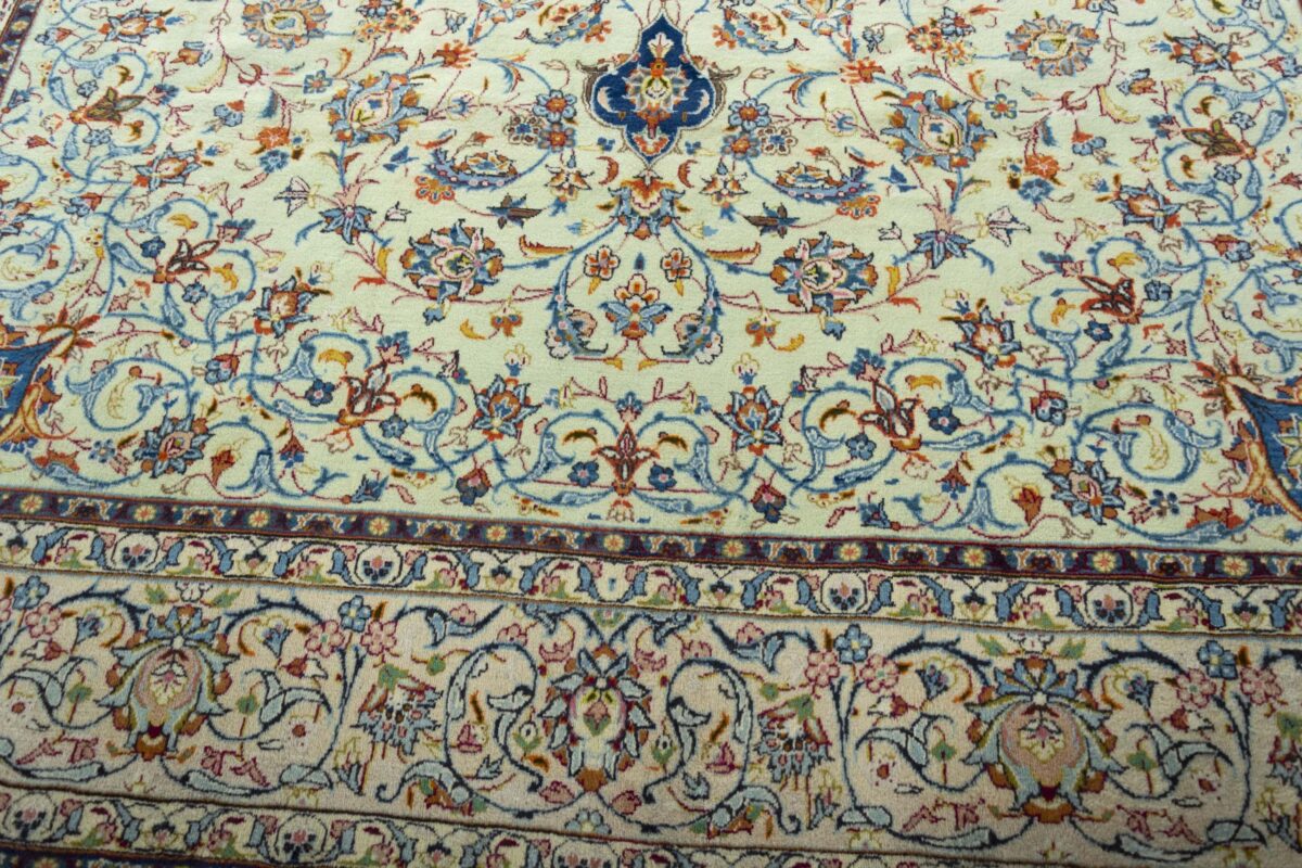 Ein typischer Kashan-Perserteppich wird aus Schurwolle auf Baumwollkette geknüpft. Klassisch ist auch die Verwendung des asymmetrischen Senneh- bzw. Perserknotens. Die Knüpfdichte kann unterschiedlich ausfallen und erreicht bei manchen unserer feinsten Exemplare weit mehr als 500.000 Knoten/m². Ein exklusiver Tipp sind außerdem unsere antiken Kashan-Teppiche aus hochwertiger Manchesterwolle – diese können Sie als Sammlerstücke ebenso bei MyTepp online kaufen.