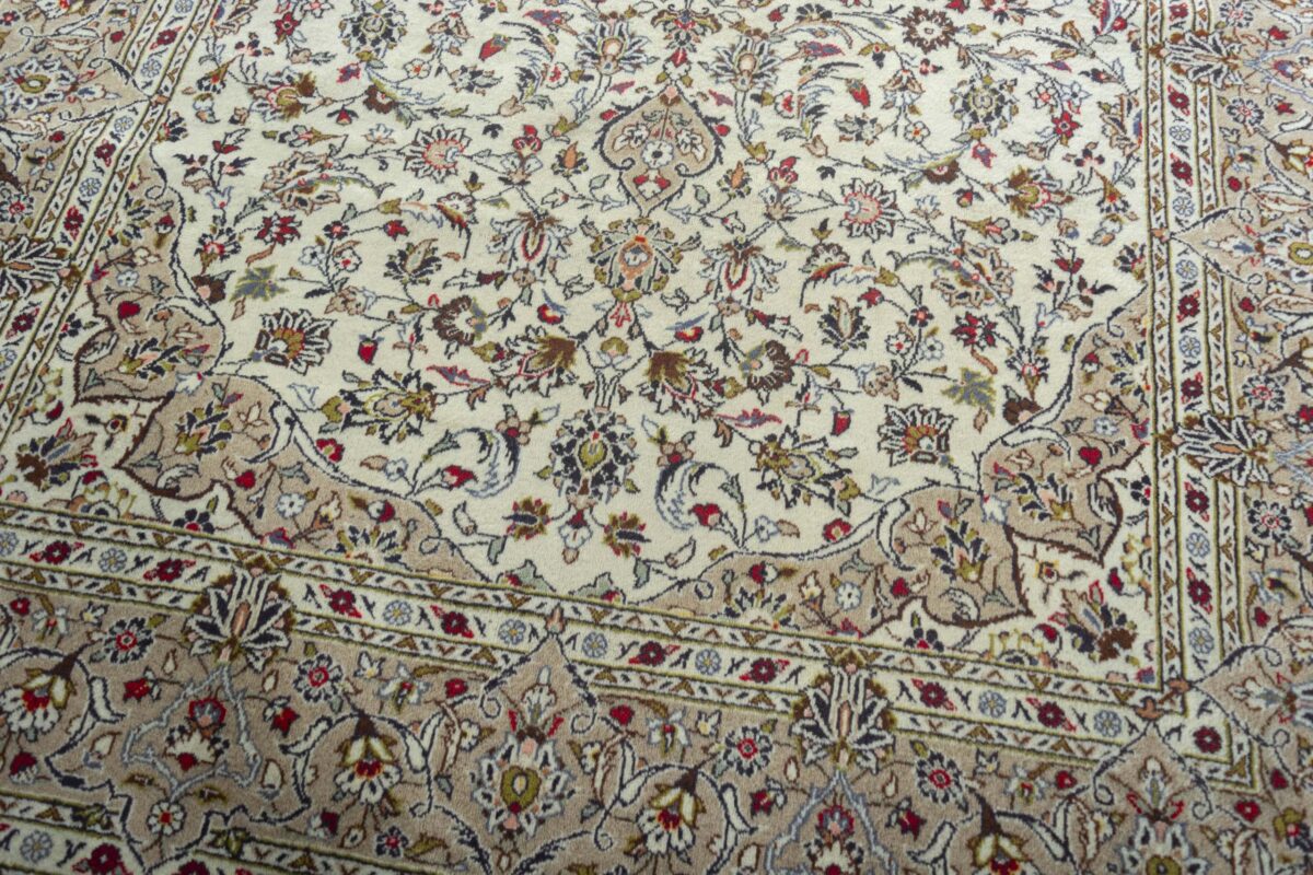 Ein typischer Kashan-Perserteppich wird aus Schurwolle auf Baumwollkette geknüpft. Klassisch ist auch die Verwendung des asymmetrischen Senneh- bzw. Perserknotens. Die Knüpfdichte kann unterschiedlich ausfallen und erreicht bei manchen unserer feinsten Exemplare weit mehr als 500.000 Knoten/m². Ein exklusiver Tipp sind außerdem unsere antiken Kashan-Teppiche aus hochwertiger Manchesterwolle – diese können Sie als Sammlerstücke ebenso bei MyTepp online kaufen.