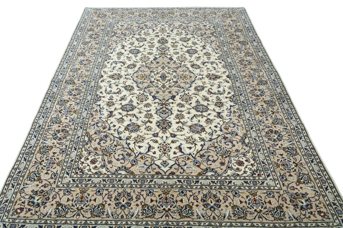 Florale Muster und harmonische Farbkompositionen gelten seit jeher als klassisch und machen auch den zeitlosen Charme des beliebten Kashan-Perserteppichs aus. Besonders für alle, die sich beim Online-Kaufen nur schwer für einen bestimmten Orientteppich entscheiden können, ist der Kashan-Perserteppich ein wertvoller Tipp. Denn dieser Orientteppich aus Kashan, einer Stadt in der berühmten iranischen Isfahan-Provinz, zählt mit seiner typisch-persischen Ornamentik und der langen Tradition zu den Klassikern der orientalischen Teppichknüpfkunst. Dank seines ausgewogenen Designs passt er fast zu jedem Einrichtungsstil und kann in Großformat Wohnräumen sogar ein majestätisches Ambiente verleihen.