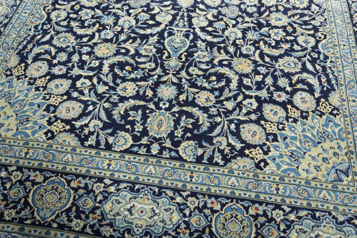 Ein typischer Kashan-Perserteppich wird aus Schurwolle auf Baumwollkette geknüpft. Klassisch ist auch die Verwendung des asymmetrischen Senneh- bzw. Perserknotens. Die Knüpfdichte kann unterschiedlich ausfallen und erreicht bei manchen unserer feinsten Exemplare weit mehr als 500.000 Knoten/m². Ein exklusiver Tipp sind außerdem unsere antiken Kashan-Teppiche aus hochwertiger Manchesterwolle – diese können Sie als Sammlerstücke ebenso bei MyTepp online kaufen.