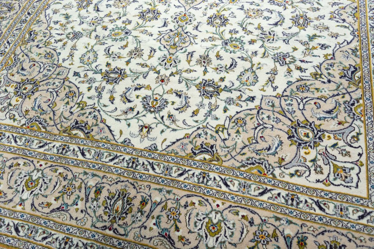 Florale Muster und harmonische Farbkompositionen gelten seit jeher als klassisch und machen auch den zeitlosen Charme des beliebten Kashan-Perserteppichs aus. Besonders für alle, die sich beim Online-Kaufen nur schwer für einen bestimmten Orientteppich entscheiden können, ist der Kashan-Perserteppich ein wertvoller Tipp. Denn dieser Orientteppich aus Kashan, einer Stadt in der berühmten iranischen Isfahan-Provinz, zählt mit seiner typisch-persischen Ornamentik und der langen Tradition zu den Klassikern der orientalischen Teppichknüpfkunst. Dank seines ausgewogenen Designs passt er fast zu jedem Einrichtungsstil und kann in Großformat Wohnräumen sogar ein majestätisches Ambiente verleihen.