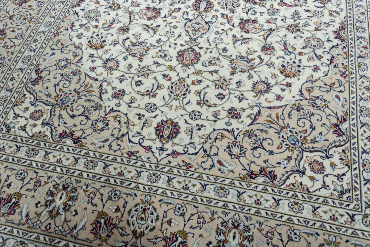 Florale Muster und harmonische Farbkompositionen gelten seit jeher als klassisch und machen auch den zeitlosen Charme des beliebten Kashan-Perserteppichs aus. Besonders für alle, die sich beim Online-Kaufen nur schwer für einen bestimmten Orientteppich entscheiden können, ist der Kashan-Perserteppich ein wertvoller Tipp. Denn dieser Orientteppich aus Kashan, einer Stadt in der berühmten iranischen Isfahan-Provinz, zählt mit seiner typisch-persischen Ornamentik und der langen Tradition zu den Klassikern der orientalischen Teppichknüpfkunst. Dank seines ausgewogenen Designs passt er fast zu jedem Einrichtungsstil und kann in Großformat Wohnräumen sogar ein majestätisches Ambiente verleihen.