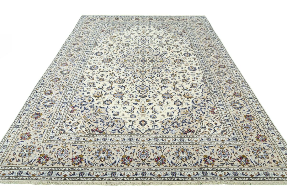 Florale Muster und harmonische Farbkompositionen gelten seit jeher als klassisch und machen auch den zeitlosen Charme des beliebten Kashan-Perserteppichs aus. Besonders für alle, die sich beim Online-Kaufen nur schwer für einen bestimmten Orientteppich entscheiden können, ist der Kashan-Perserteppich ein wertvoller Tipp. Denn dieser Orientteppich aus Kashan, einer Stadt in der berühmten iranischen Isfahan-Provinz, zählt mit seiner typisch-persischen Ornamentik und der langen Tradition zu den Klassikern der orientalischen Teppichknüpfkunst. Dank seines ausgewogenen Designs passt er fast zu jedem Einrichtungsstil und kann in Großformat Wohnräumen sogar ein majestätisches Ambiente verleihen.