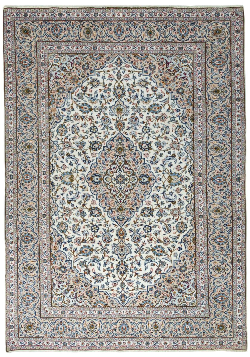 Florale Muster und harmonische Farbkompositionen gelten seit jeher als klassisch und machen auch den zeitlosen Charme des beliebten Kashan-Perserteppichs aus. Besonders für alle, die sich beim Online-Kaufen nur schwer für einen bestimmten Orientteppich entscheiden können, ist der Kashan-Perserteppich ein wertvoller Tipp. Denn dieser Orientteppich aus Kashan, einer Stadt in der berühmten iranischen Isfahan-Provinz, zählt mit seiner typisch-persischen Ornamentik und der langen Tradition zu den Klassikern der orientalischen Teppichknüpfkunst. Dank seines ausgewogenen Designs passt er fast zu jedem Einrichtungsstil und kann in Großformat Wohnräumen sogar ein majestätisches Ambiente verleihen.