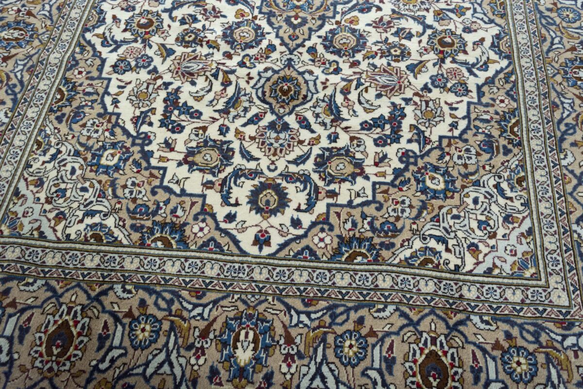 Ein typischer Kashan-Perserteppich wird aus Schurwolle auf Baumwollkette geknüpft. Klassisch ist auch die Verwendung des asymmetrischen Senneh- bzw. Perserknotens. Die Knüpfdichte kann unterschiedlich ausfallen und erreicht bei manchen unserer feinsten Exemplare weit mehr als 500.000 Knoten/m². Ein exklusiver Tipp sind außerdem unsere antiken Kashan-Teppiche aus hochwertiger Manchesterwolle – diese können Sie als Sammlerstücke ebenso bei MyTepp online kaufen.