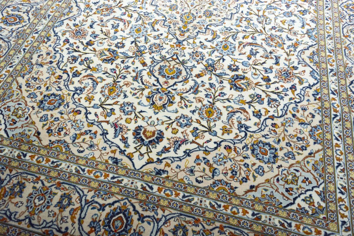 Florale Muster und harmonische Farbkompositionen gelten seit jeher als klassisch und machen auch den zeitlosen Charme des beliebten Kashan-Perserteppichs aus. Besonders für alle, die sich beim Online-Kaufen nur schwer für einen bestimmten Orientteppich entscheiden können, ist der Kashan-Perserteppich ein wertvoller Tipp. Denn dieser Orientteppich aus Kashan, einer Stadt in der berühmten iranischen Isfahan-Provinz, zählt mit seiner typisch-persischen Ornamentik und der langen Tradition zu den Klassikern der orientalischen Teppichknüpfkunst. Dank seines ausgewogenen Designs passt er fast zu jedem Einrichtungsstil und kann in Großformat Wohnräumen sogar ein majestätisches Ambiente verleihen.