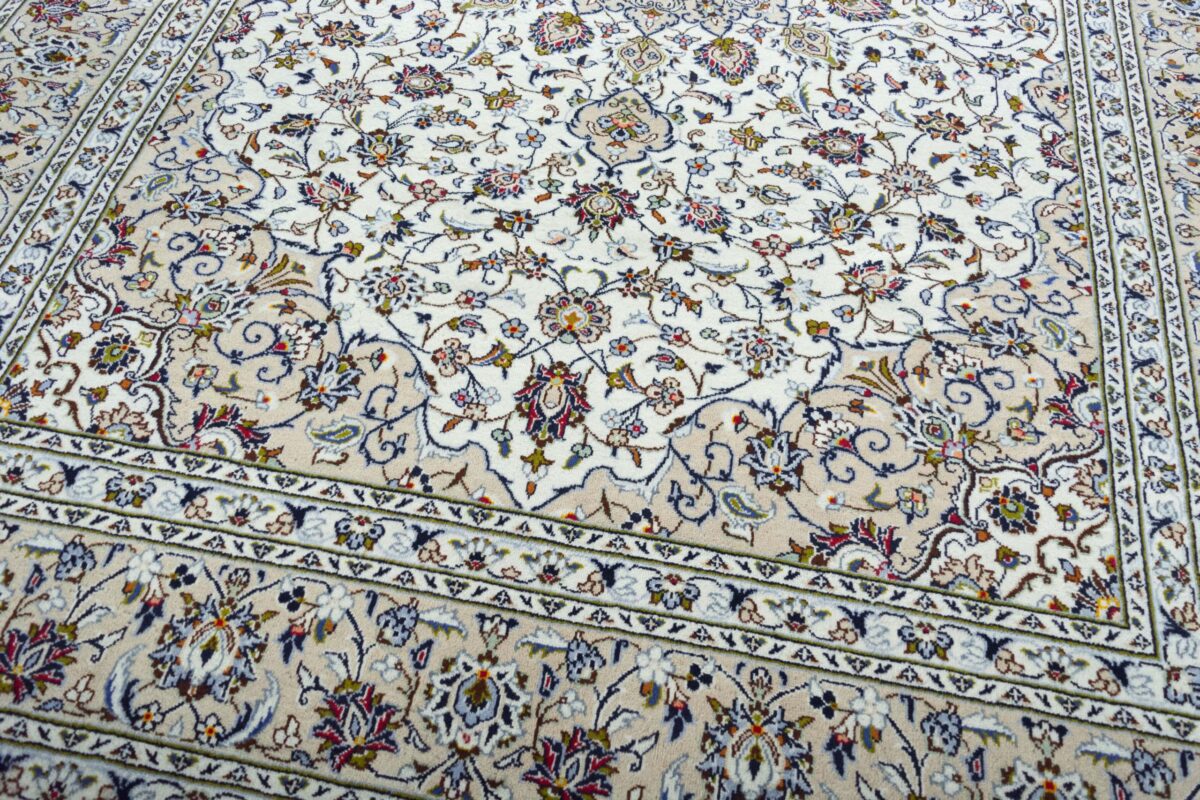 Florale Muster und harmonische Farbkompositionen gelten seit jeher als klassisch und machen auch den zeitlosen Charme des beliebten Kashan-Perserteppichs aus. Besonders für alle, die sich beim Online-Kaufen nur schwer für einen bestimmten Orientteppich entscheiden können, ist der Kashan-Perserteppich ein wertvoller Tipp. Denn dieser Orientteppich aus Kashan, einer Stadt in der berühmten iranischen Isfahan-Provinz, zählt mit seiner typisch-persischen Ornamentik und der langen Tradition zu den Klassikern der orientalischen Teppichknüpfkunst. Dank seines ausgewogenen Designs passt er fast zu jedem Einrichtungsstil und kann in Großformat Wohnräumen sogar ein majestätisches Ambiente verleihen.