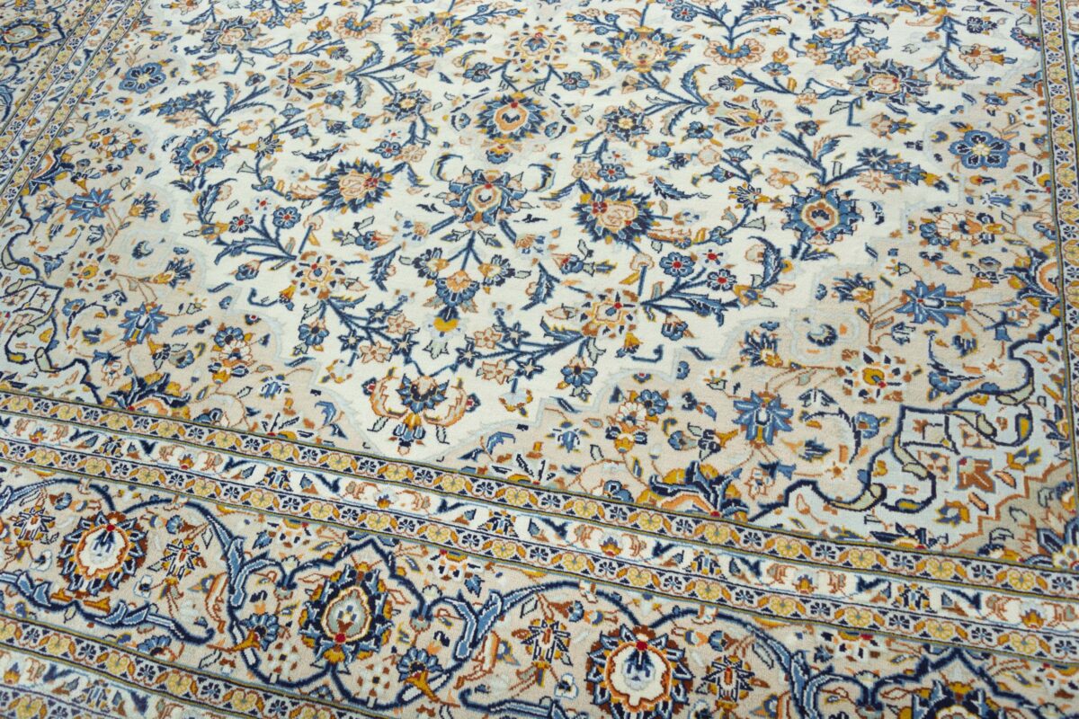 Ein typischer Kashan-Perserteppich wird aus Schurwolle auf Baumwollkette geknüpft. Klassisch ist auch die Verwendung des asymmetrischen Senneh- bzw. Perserknotens. Die Knüpfdichte kann unterschiedlich ausfallen und erreicht bei manchen unserer feinsten Exemplare weit mehr als 500.000 Knoten/m². Ein exklusiver Tipp sind außerdem unsere antiken Kashan-Teppiche aus hochwertiger Manchesterwolle – diese können Sie als Sammlerstücke ebenso bei MyTepp online kaufen.