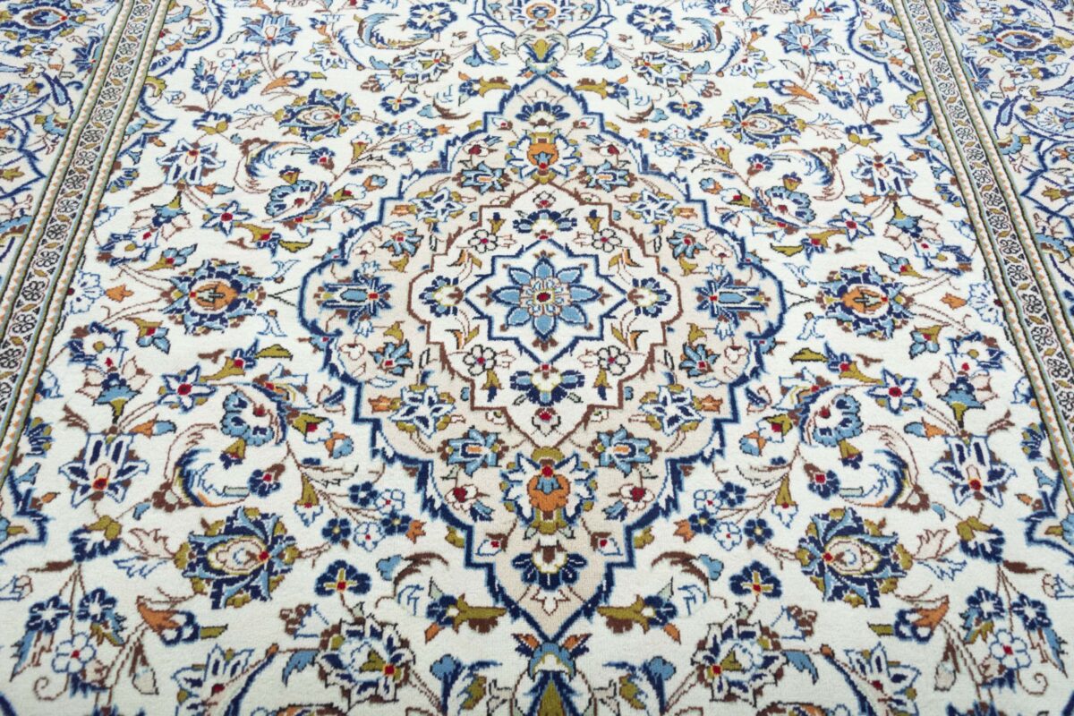 Florale Muster und harmonische Farbkompositionen gelten seit jeher als klassisch und machen auch den zeitlosen Charme des beliebten Kashan-Perserteppichs aus. Besonders für alle, die sich beim Online-Kaufen nur schwer für einen bestimmten Orientteppich entscheiden können, ist der Kashan-Perserteppich ein wertvoller Tipp. Denn dieser Orientteppich aus Kashan, einer Stadt in der berühmten iranischen Isfahan-Provinz, zählt mit seiner typisch-persischen Ornamentik und der langen Tradition zu den Klassikern der orientalischen Teppichknüpfkunst. Dank seines ausgewogenen Designs passt er fast zu jedem Einrichtungsstil und kann in Großformat Wohnräumen sogar ein majestätisches Ambiente verleihen.