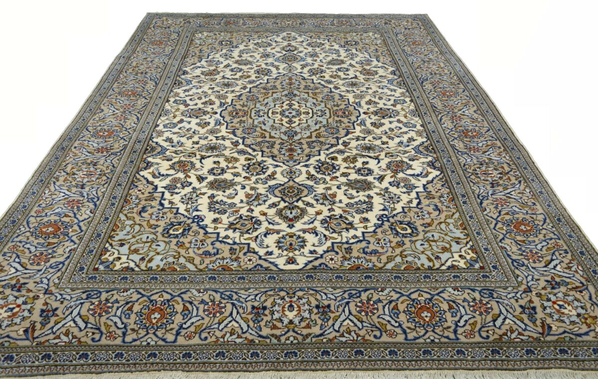 Florale Muster und harmonische Farbkompositionen gelten seit jeher als klassisch und machen auch den zeitlosen Charme des beliebten Kashan-Perserteppichs aus. Besonders für alle, die sich beim Online-Kaufen nur schwer für einen bestimmten Orientteppich entscheiden können, ist der Kashan-Perserteppich ein wertvoller Tipp. Denn dieser Orientteppich aus Kashan, einer Stadt in der berühmten iranischen Isfahan-Provinz, zählt mit seiner typisch-persischen Ornamentik und der langen Tradition zu den Klassikern der orientalischen Teppichknüpfkunst. Dank seines ausgewogenen Designs passt er fast zu jedem Einrichtungsstil und kann in Großformat Wohnräumen sogar ein majestätisches Ambiente verleihen.