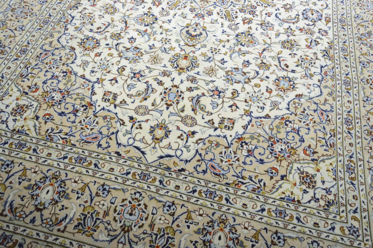 Florale Muster und harmonische Farbkompositionen gelten seit jeher als klassisch und machen auch den zeitlosen Charme des beliebten Kashan-Perserteppichs aus. Besonders für alle, die sich beim Online-Kaufen nur schwer für einen bestimmten Orientteppich entscheiden können, ist der Kashan-Perserteppich ein wertvoller Tipp. Denn dieser Orientteppich aus Kashan, einer Stadt in der berühmten iranischen Isfahan-Provinz, zählt mit seiner typisch-persischen Ornamentik und der langen Tradition zu den Klassikern der orientalischen Teppichknüpfkunst. Dank seines ausgewogenen Designs passt er fast zu jedem Einrichtungsstil und kann in Großformat Wohnräumen sogar ein majestätisches Ambiente verleihen.