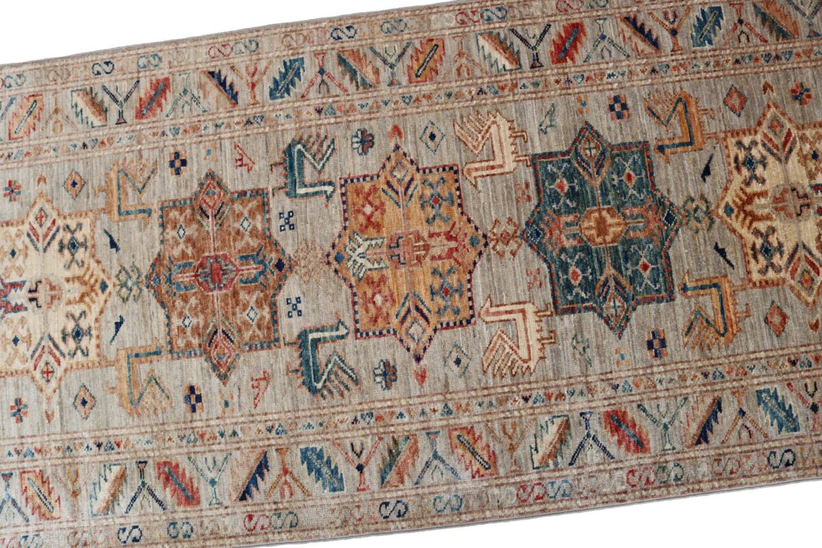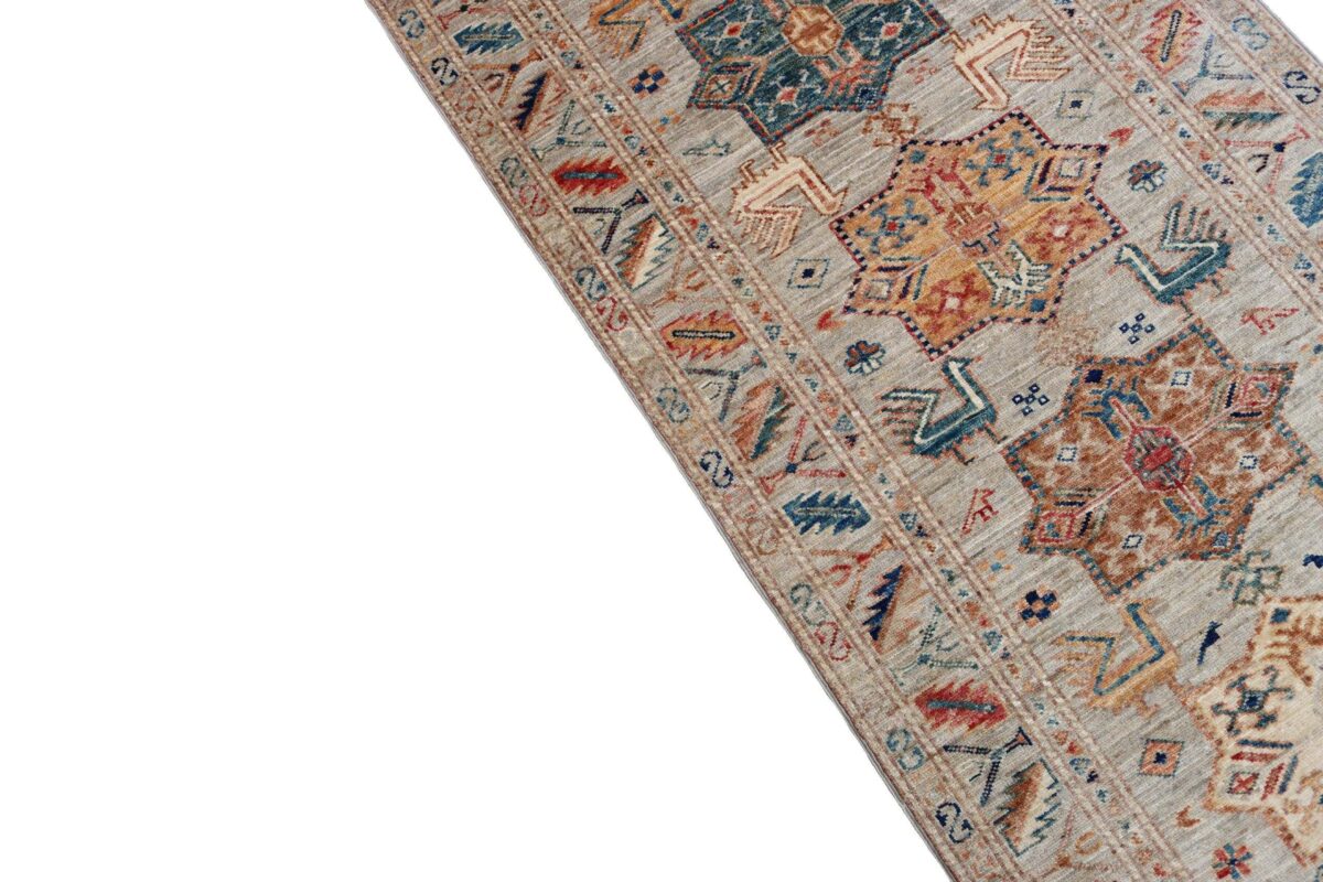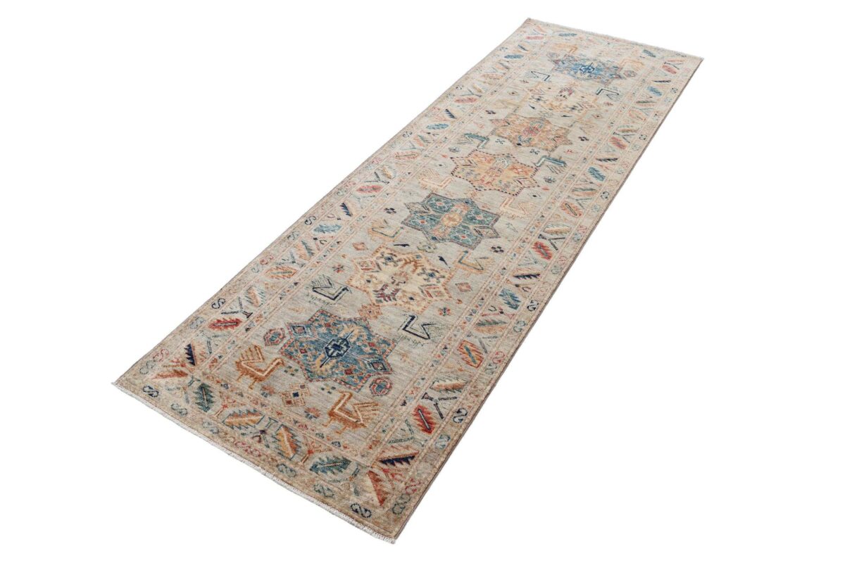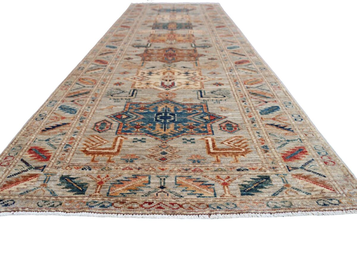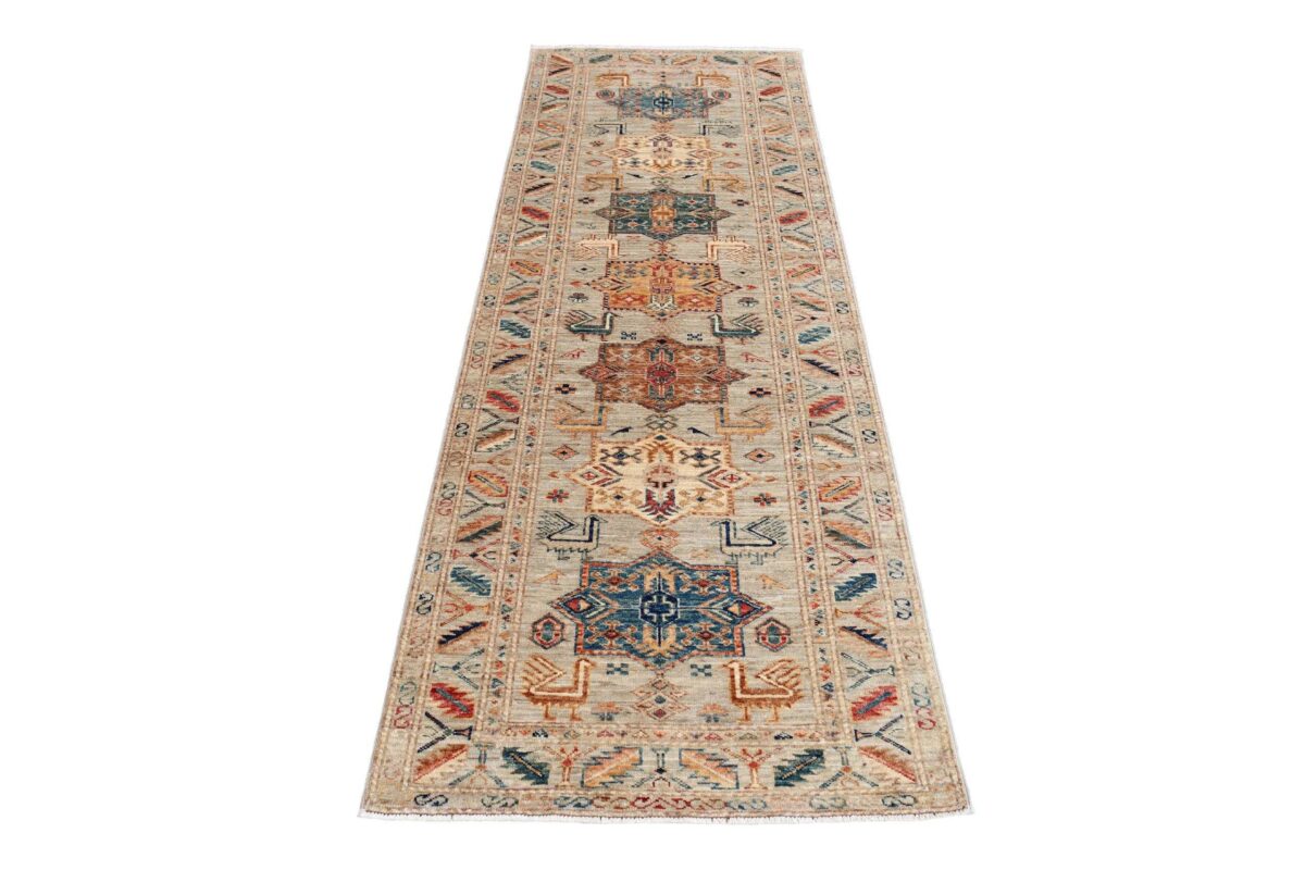 Mit ihren klaren, geometrischen Mustern sind kaukasische Teppiche eine ideale Ergänzung zu zeitgenössischen Einrichtungen und werden auch wegen ihrer Robustheit gerne nachgefragt. Wer sich für kaukasische Teppiche interessiert, kann selbstverständlich bei uns ausgewählte Exemplare online kaufen. Zu den geläufigsten kaukasischen Teppichen zählt der Kazak-Orientteppich, der hauptsächlich im Knüpfgebiet nördlich des Sewansees angefertigt wird. Das Kazak-Design weist die typischen kaukasischen Geometrieformen auf, manchmal mit zierlichen Details wie vereinfachten Tierdarstellungen. Ein Kazak-Orientteppich beeindruckt außerdem durch seine harmonische Farbgebung. So mancher Betrachter staunt über den gelungenen Einsatz von Türkis- und Grüntönen, der in dieser hochgradig-ästhetischen Form bei Orientteppichen selten ist. Beachtenswert sind ebenso die feinsinnig gestalteten Abschlüsse an den Teppichseiten eines Kazaks. Für den Flor wird reine Schurwolle mit türkischen Knoten auf Baumwollkette verarbeitet, wobei die durchschnittliche Knüpfung mit etwa 220.000 Knoten/m² als fein anzusehen ist. Online kaufen lassen sich außerdem sehr begehrte antike Kazak-Teppiche mit extra-feiner Knüpfung, die zur Gänze aus Schurwolle bestehen.