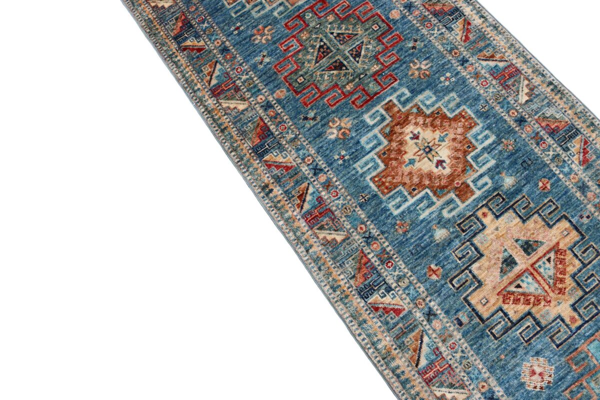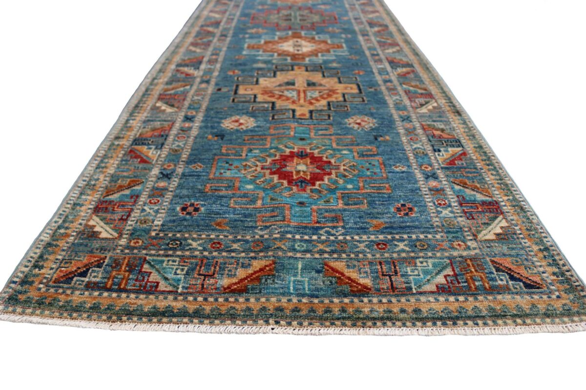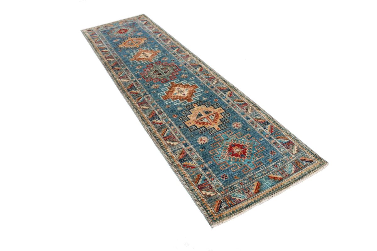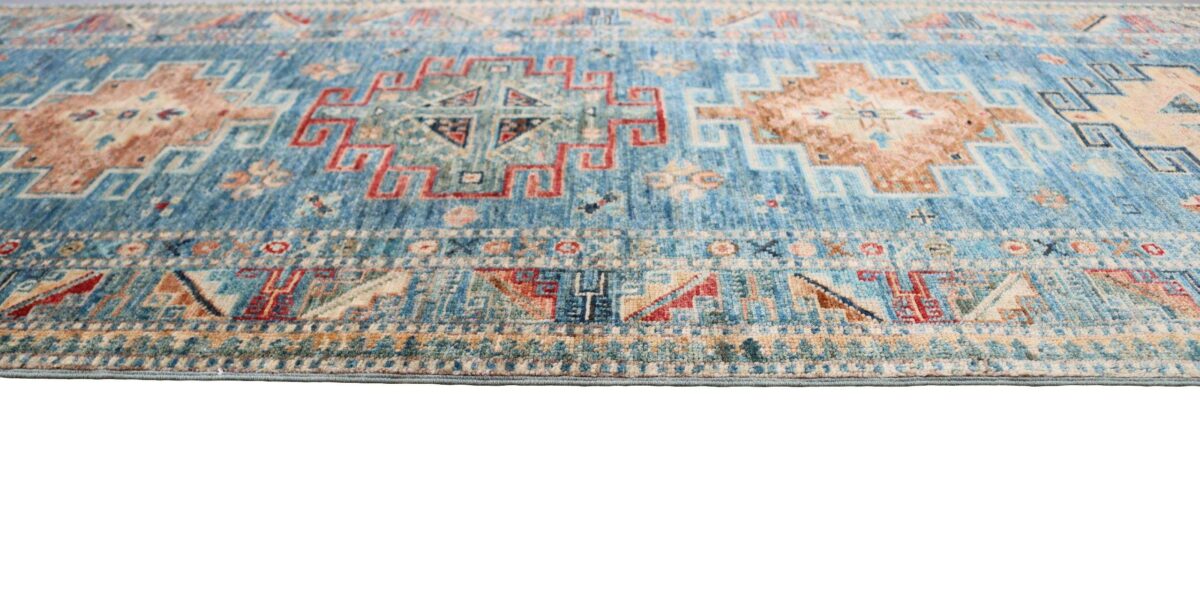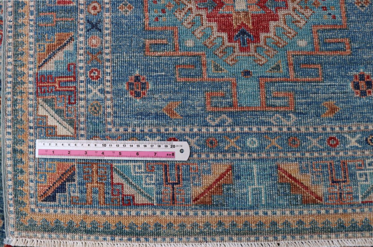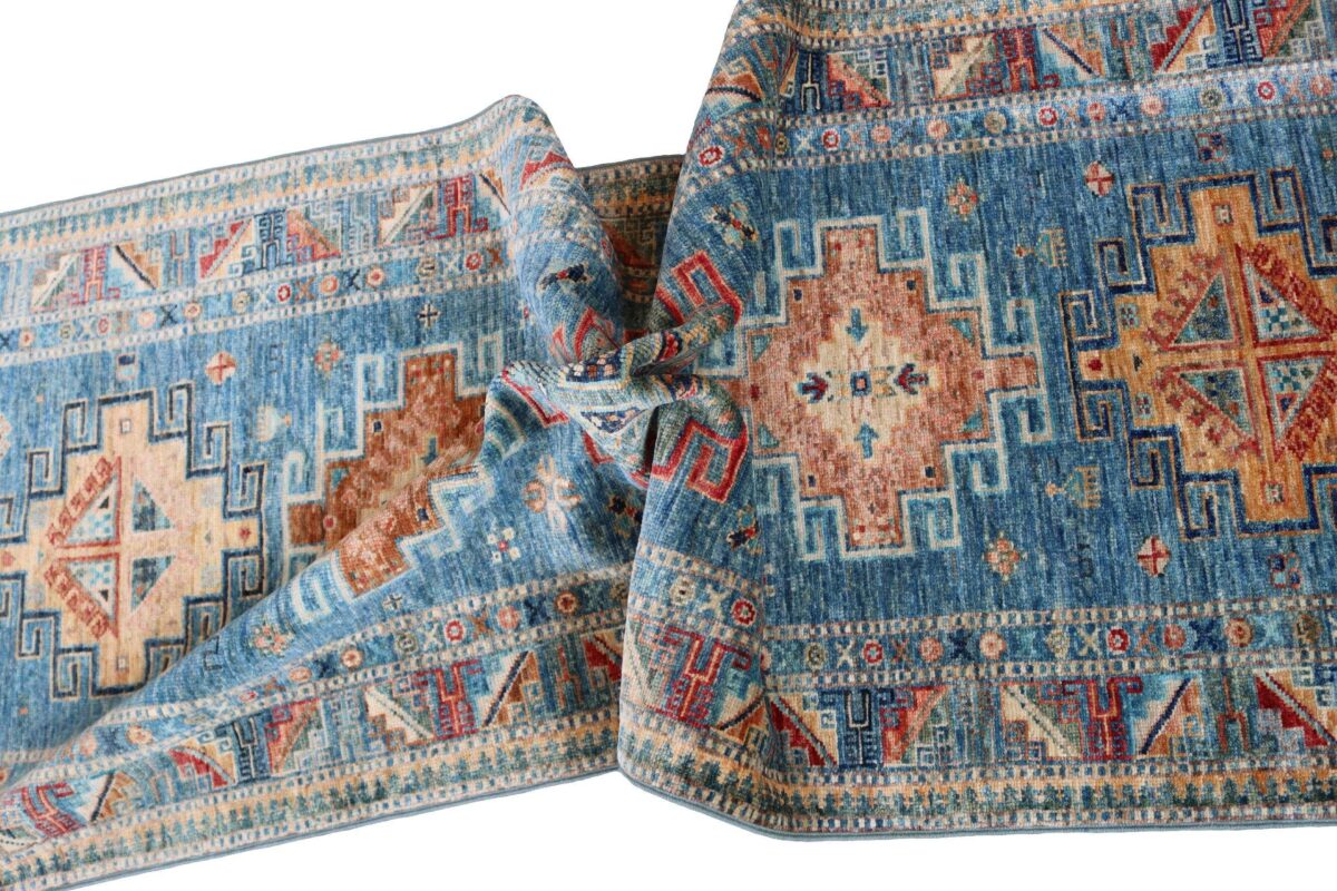 Mit ihren klaren, geometrischen Mustern sind kaukasische Teppiche eine ideale Ergänzung zu zeitgenössischen Einrichtungen und werden auch wegen ihrer Robustheit gerne nachgefragt. Wer sich für kaukasische Teppiche interessiert, kann selbstverständlich bei uns ausgewählte Exemplare online kaufen. Zu den geläufigsten kaukasischen Teppichen zählt der Kazak-Orientteppich, der hauptsächlich im Knüpfgebiet nördlich des Sewansees angefertigt wird. Das Kazak-Design weist die typischen kaukasischen Geometrieformen auf, manchmal mit zierlichen Details wie vereinfachten Tierdarstellungen. Ein Kazak-Orientteppich beeindruckt außerdem durch seine harmonische Farbgebung. So mancher Betrachter staunt über den gelungenen Einsatz von Türkis- und Grüntönen, der in dieser hochgradig-ästhetischen Form bei Orientteppichen selten ist. Beachtenswert sind ebenso die feinsinnig gestalteten Abschlüsse an den Teppichseiten eines Kazaks. Für den Flor wird reine Schurwolle mit türkischen Knoten auf Baumwollkette verarbeitet, wobei die durchschnittliche Knüpfung mit etwa 220.000 Knoten/m² als fein anzusehen ist. Online kaufen lassen sich außerdem sehr begehrte antike Kazak-Teppiche mit extra-feiner Knüpfung, die zur Gänze aus Schurwolle bestehen.