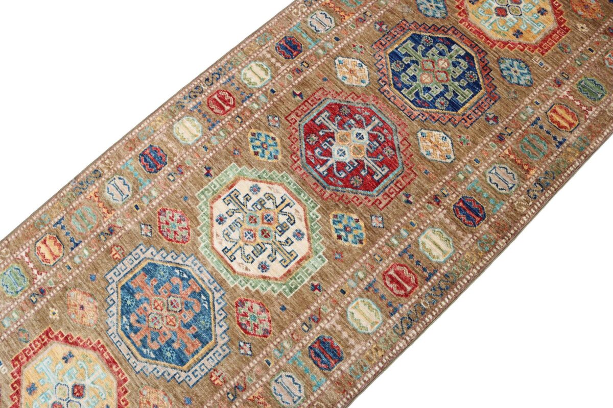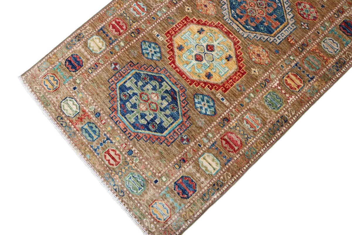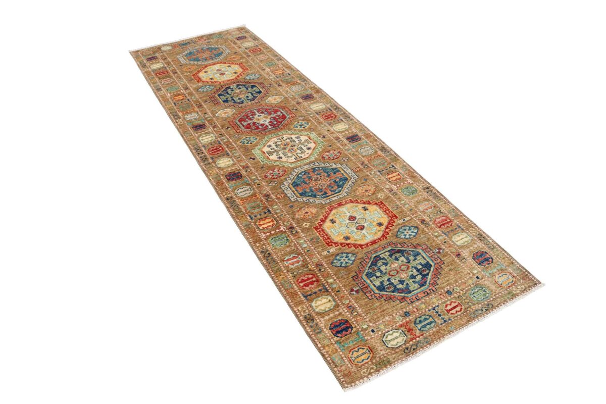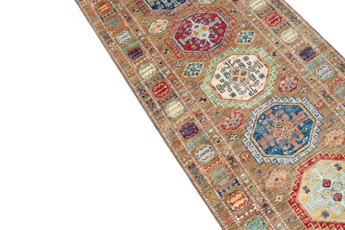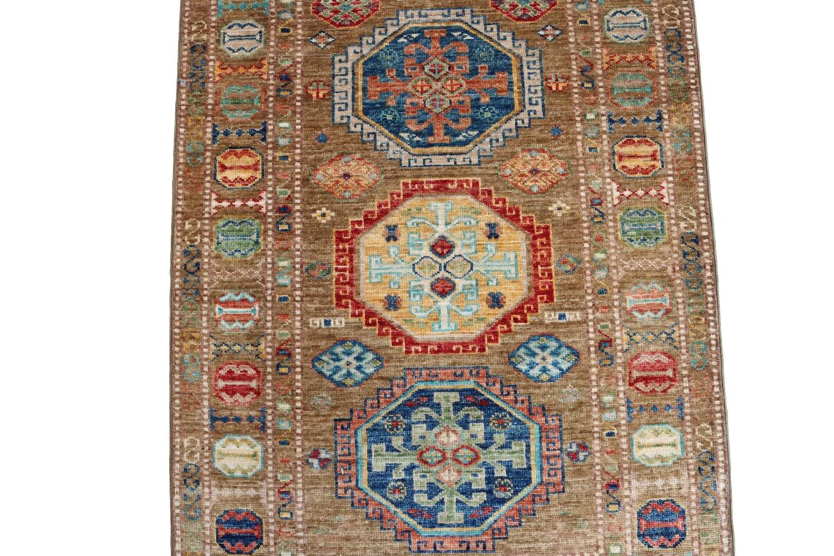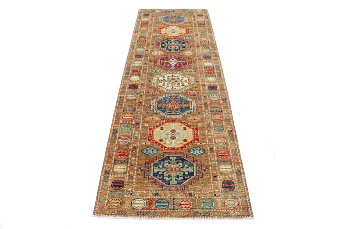 Mit ihren klaren, geometrischen Mustern sind kaukasische Teppiche eine ideale Ergänzung zu zeitgenössischen Einrichtungen und werden auch wegen ihrer Robustheit gerne nachgefragt. Wer sich für kaukasische Teppiche interessiert, kann selbstverständlich bei uns ausgewählte Exemplare online kaufen. Zu den geläufigsten kaukasischen Teppichen zählt der Kazak-Orientteppich, der hauptsächlich im Knüpfgebiet nördlich des Sewansees angefertigt wird. Das Kazak-Design weist die typischen kaukasischen Geometrieformen auf, manchmal mit zierlichen Details wie vereinfachten Tierdarstellungen. Ein Kazak-Orientteppich beeindruckt außerdem durch seine harmonische Farbgebung. So mancher Betrachter staunt über den gelungenen Einsatz von Türkis- und Grüntönen, der in dieser hochgradig-ästhetischen Form bei Orientteppichen selten ist. Beachtenswert sind ebenso die feinsinnig gestalteten Abschlüsse an den Teppichseiten eines Kazaks. Für den Flor wird reine Schurwolle mit türkischen Knoten auf Baumwollkette verarbeitet, wobei die durchschnittliche Knüpfung mit etwa 220.000 Knoten/m² als fein anzusehen ist. Online kaufen lassen sich außerdem sehr begehrte antike Kazak-Teppiche mit extra-feiner Knüpfung, die zur Gänze aus Schurwolle bestehen.
