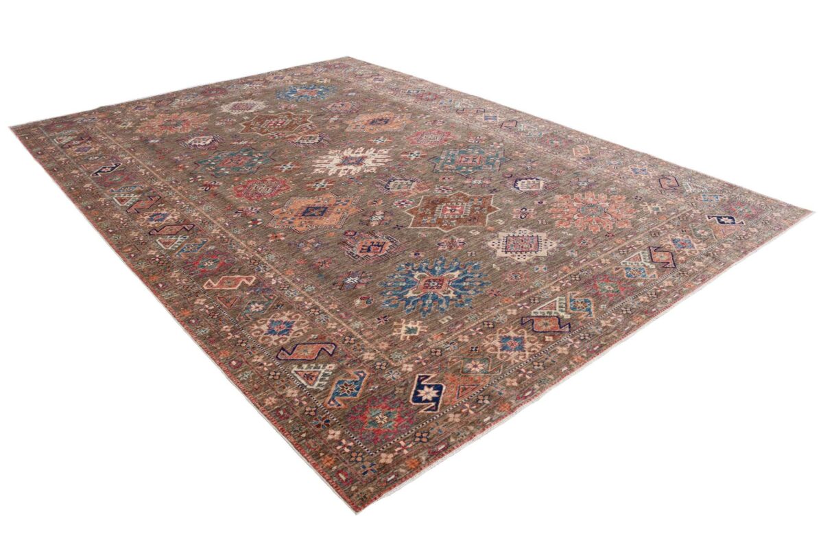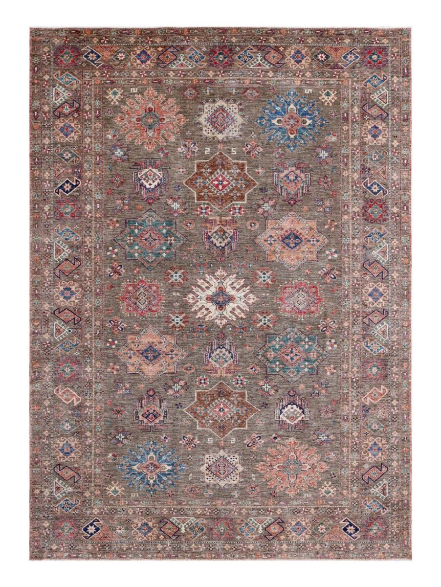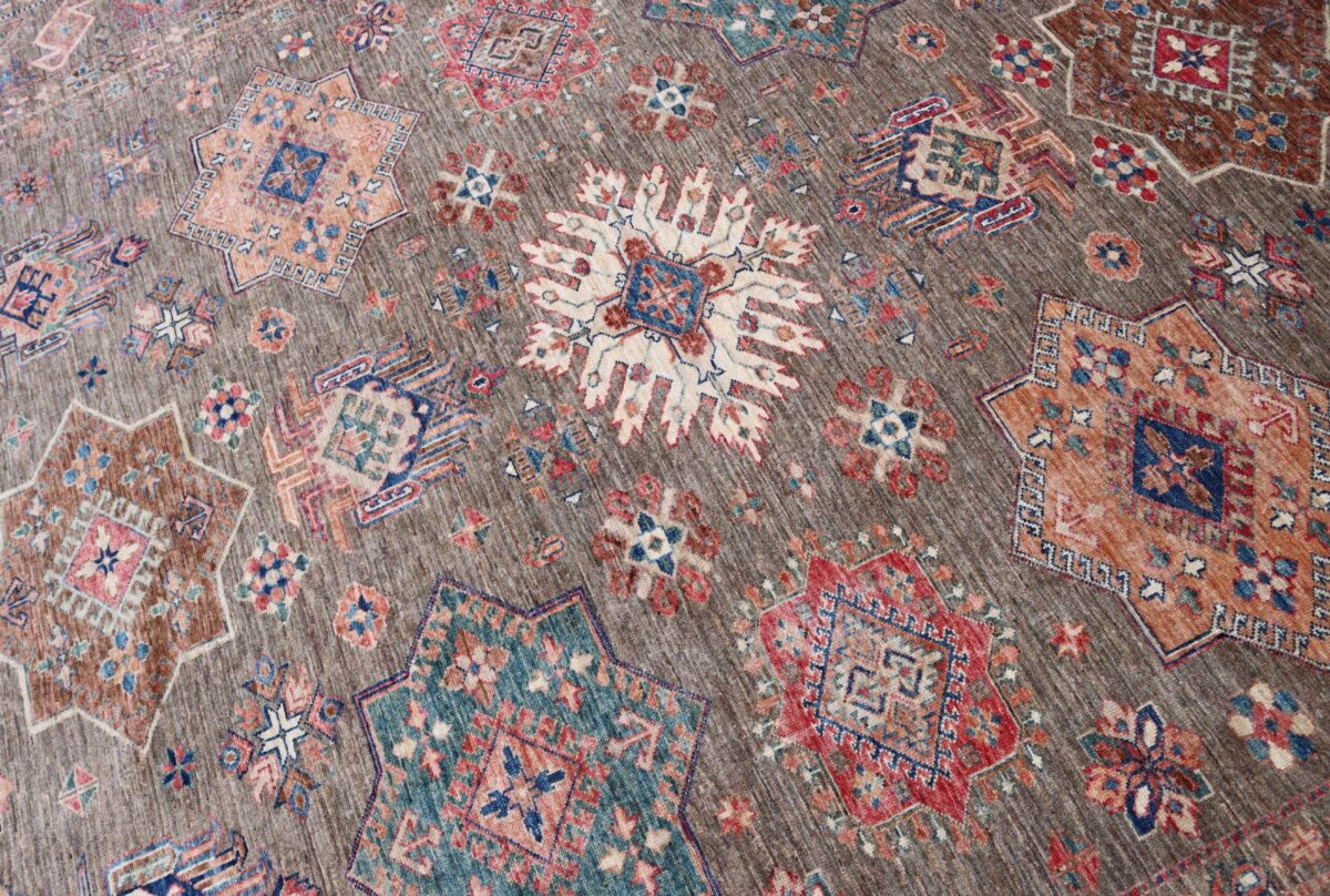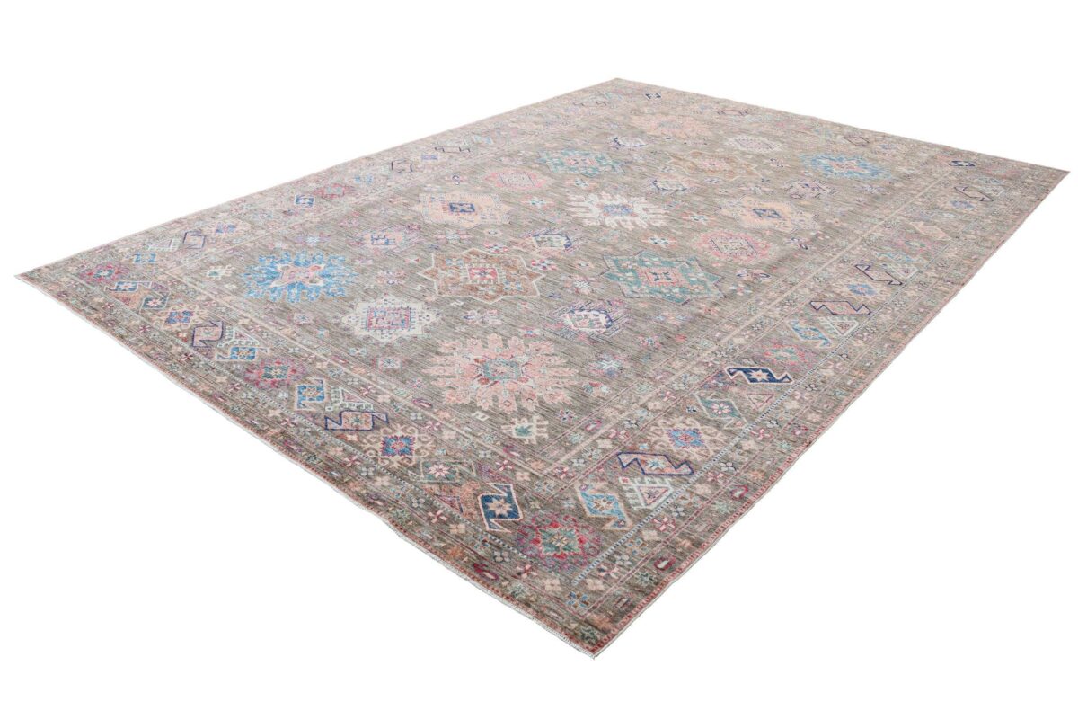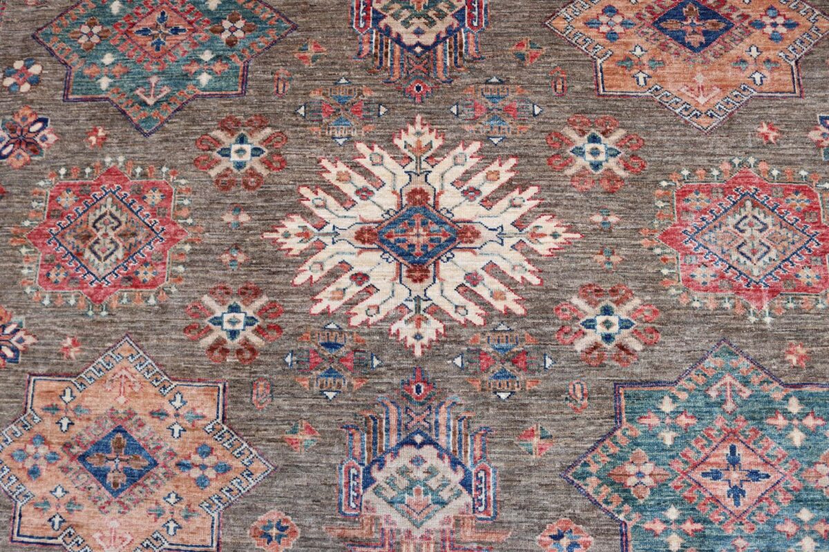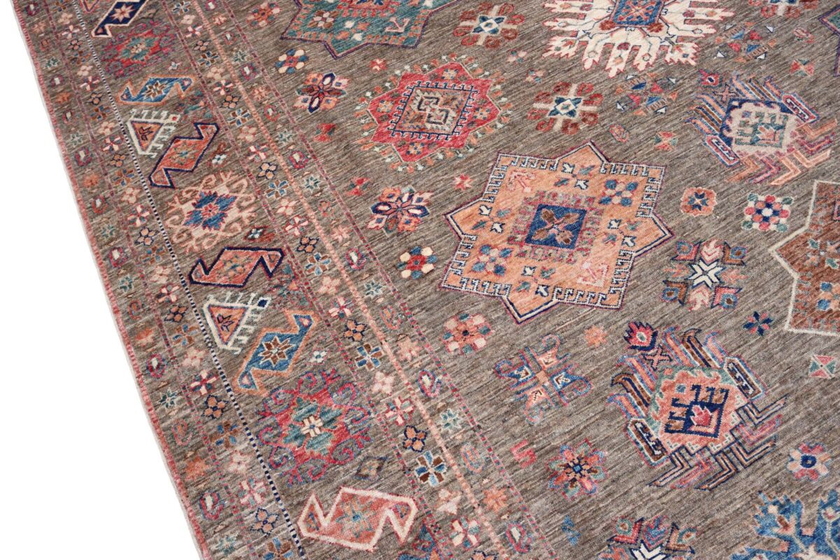 Mit ihren klaren, geometrischen Mustern sind kaukasische Teppiche eine ideale Ergänzung zu zeitgenössischen Einrichtungen und werden auch wegen ihrer Robustheit gerne nachgefragt. Wer sich für kaukasische Teppiche interessiert, kann selbstverständlich bei uns ausgewählte Exemplare online kaufen. Zu den geläufigsten kaukasischen Teppichen zählt der Kazak-Orientteppich, der hauptsächlich im Knüpfgebiet nördlich des Sewansees angefertigt wird. Das Kazak-Design weist die typischen kaukasischen Geometrieformen auf, manchmal mit zierlichen Details wie vereinfachten Tierdarstellungen. Ein Kazak-Orientteppich beeindruckt außerdem durch seine harmonische Farbgebung. So mancher Betrachter staunt über den gelungenen Einsatz von Türkis- und Grüntönen, der in dieser hochgradig-ästhetischen Form bei Orientteppichen selten ist. Beachtenswert sind ebenso die feinsinnig gestalteten Abschlüsse an den Teppichseiten eines Kazaks. Für den Flor wird reine Schurwolle mit türkischen Knoten auf Baumwollkette verarbeitet, wobei die durchschnittliche Knüpfung mit etwa 220.000 Knoten/m² als fein anzusehen ist. Online kaufen lassen sich außerdem sehr begehrte antike Kazak-Teppiche mit extra-feiner Knüpfung, die zur Gänze aus Schurwolle bestehen.