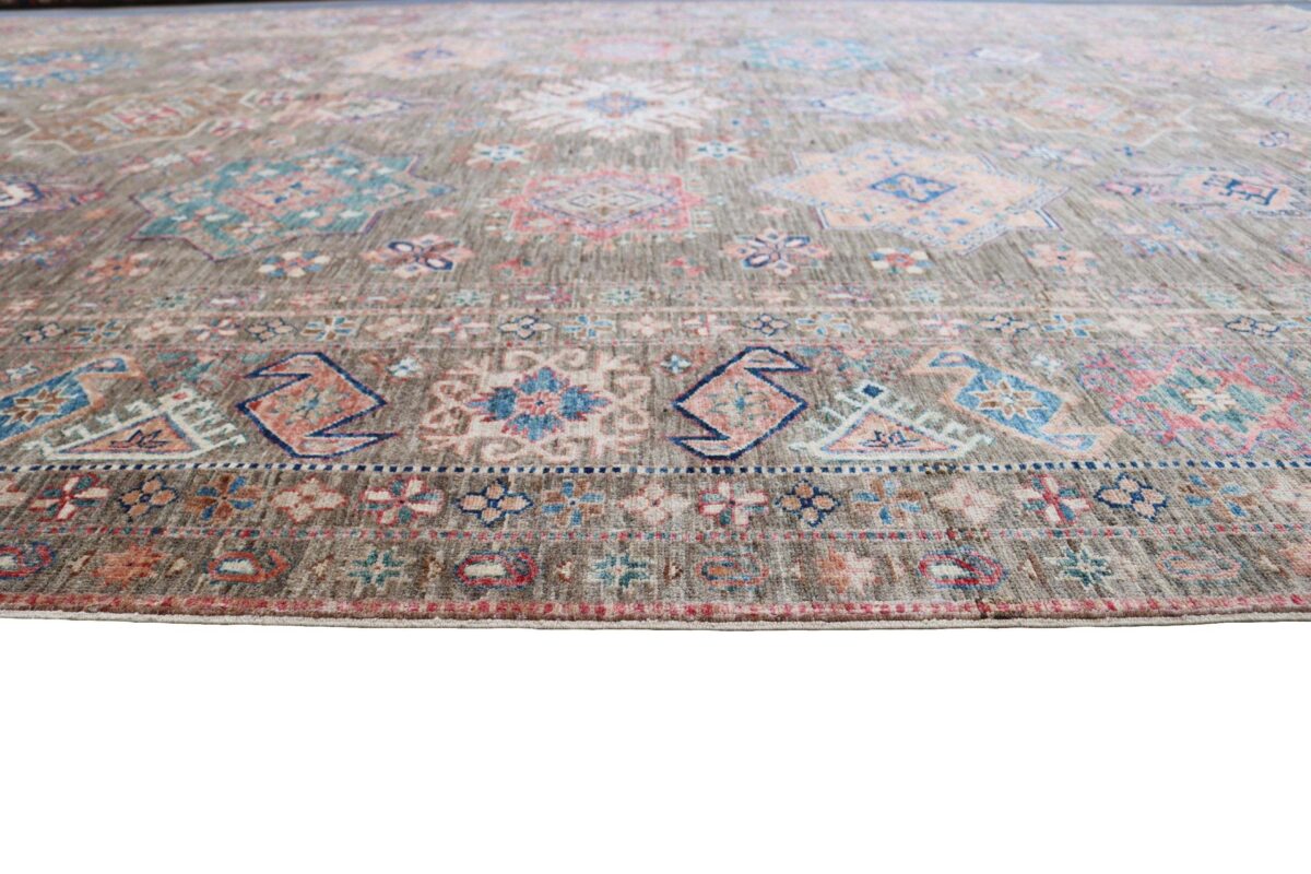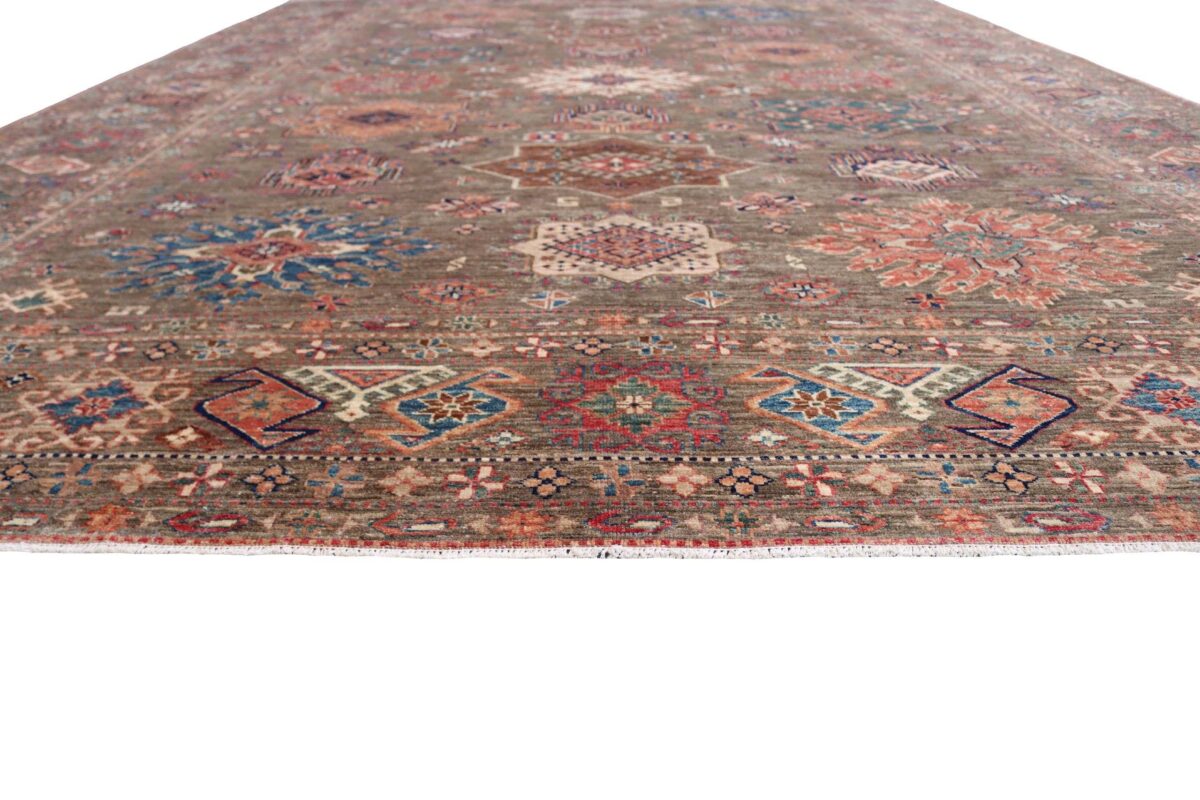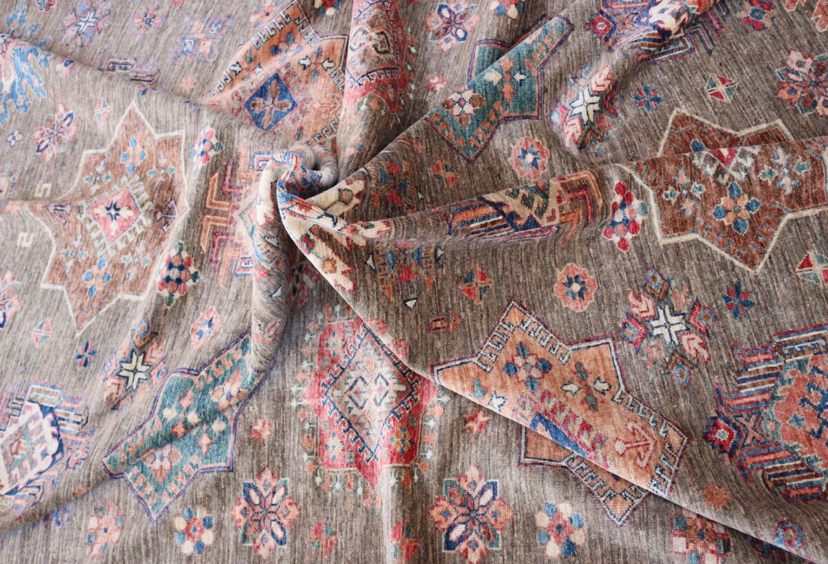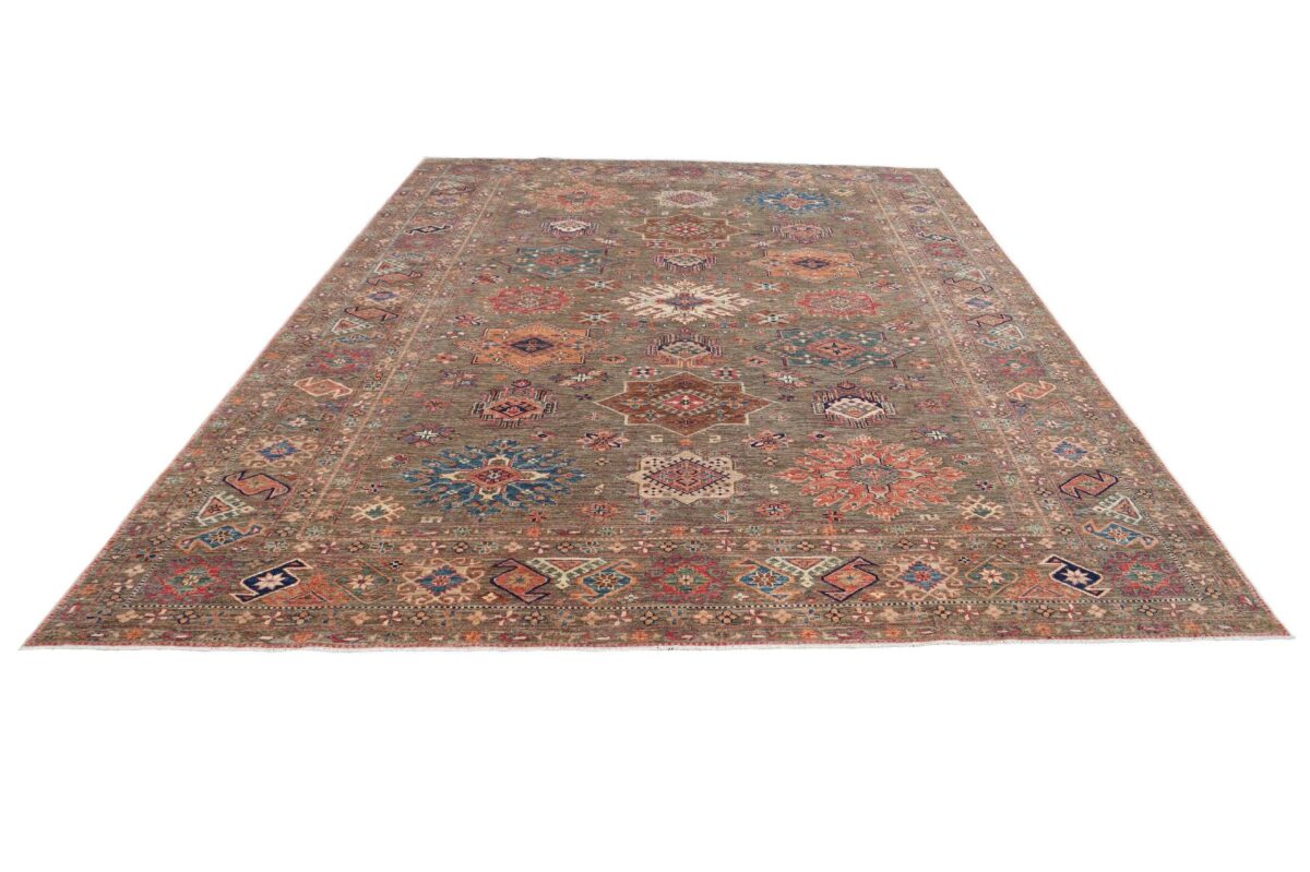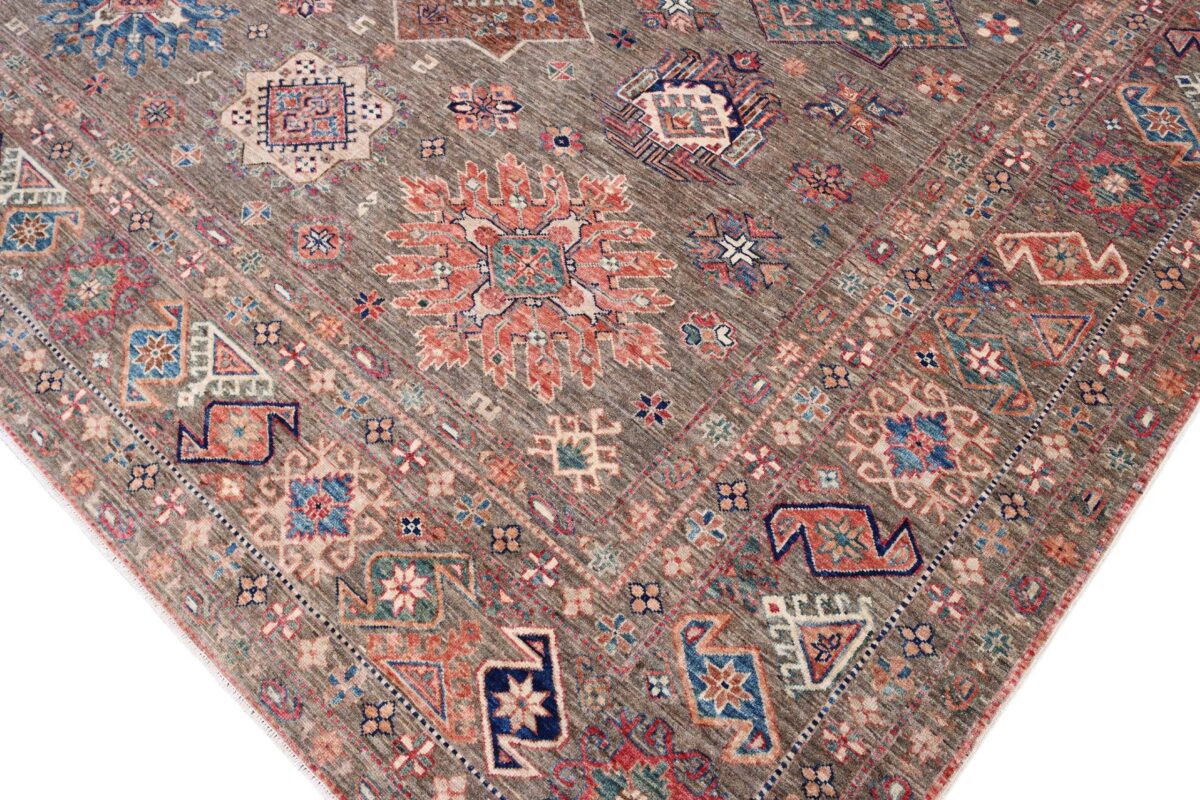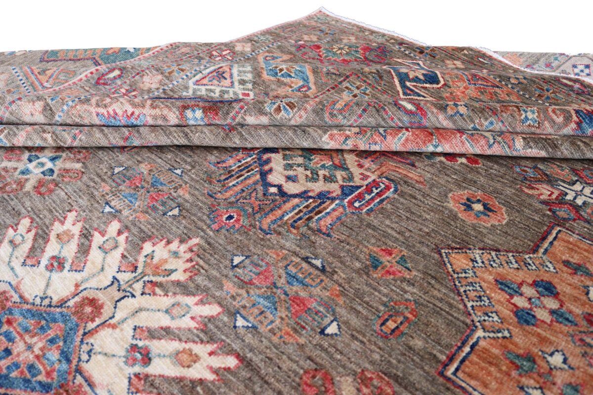Mit ihren klaren, geometrischen Mustern sind kaukasische Teppiche eine ideale Ergänzung zu zeitgenössischen Einrichtungen und werden auch wegen ihrer Robustheit gerne nachgefragt. Wer sich für kaukasische Teppiche interessiert, kann selbstverständlich bei uns ausgewählte Exemplare online kaufen. Zu den geläufigsten kaukasischen Teppichen zählt der Kazak-Orientteppich, der hauptsächlich im Knüpfgebiet nördlich des Sewansees angefertigt wird. Das Kazak-Design weist die typischen kaukasischen Geometrieformen auf, manchmal mit zierlichen Details wie vereinfachten Tierdarstellungen. Ein Kazak-Orientteppich beeindruckt außerdem durch seine harmonische Farbgebung. So mancher Betrachter staunt über den gelungenen Einsatz von Türkis- und Grüntönen, der in dieser hochgradig-ästhetischen Form bei Orientteppichen selten ist. Beachtenswert sind ebenso die feinsinnig gestalteten Abschlüsse an den Teppichseiten eines Kazaks. Für den Flor wird reine Schurwolle mit türkischen Knoten auf Baumwollkette verarbeitet, wobei die durchschnittliche Knüpfung mit etwa 220.000 Knoten/m² als fein anzusehen ist. Online kaufen lassen sich außerdem sehr begehrte antike Kazak-Teppiche mit extra-feiner Knüpfung, die zur Gänze aus Schurwolle bestehen.